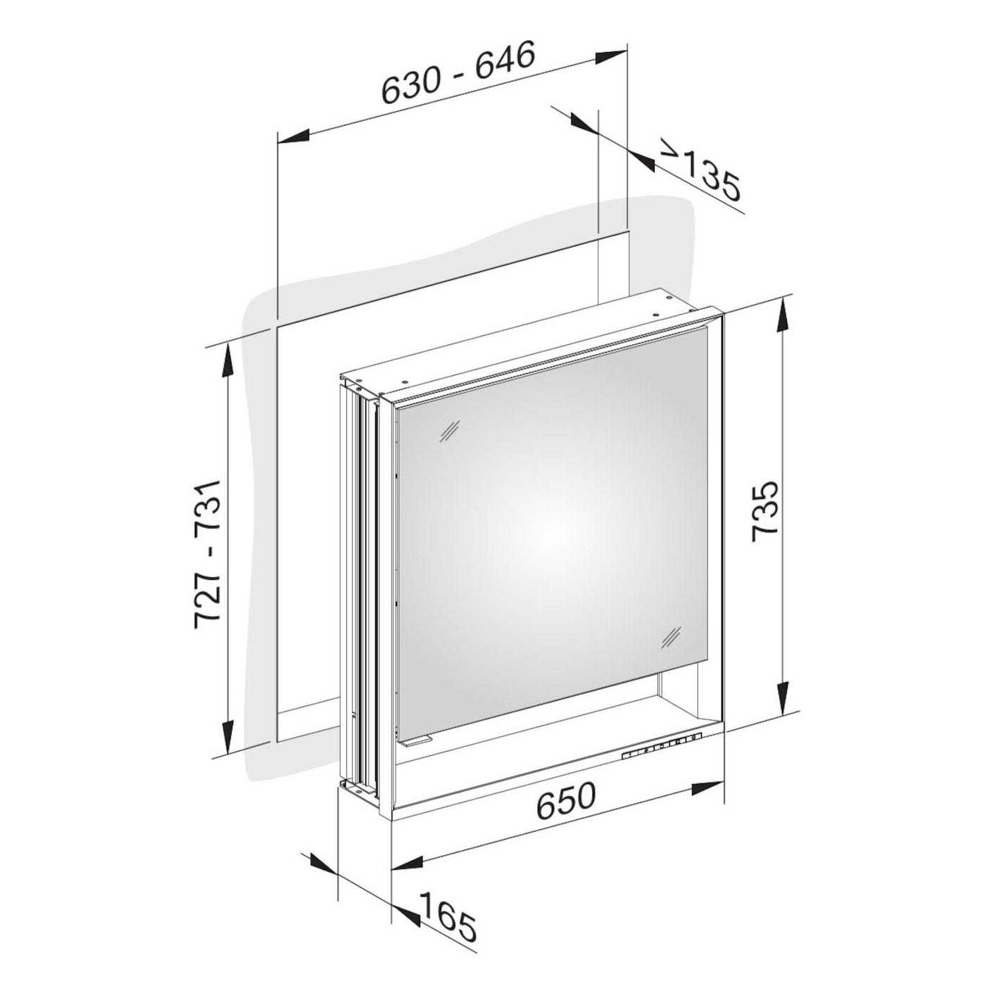 Keuco Royal Lumos Wandeinbau Spiegelschrank 65 x 73,5 cm, Anschlag rechts, offene Ablage, CH Version
