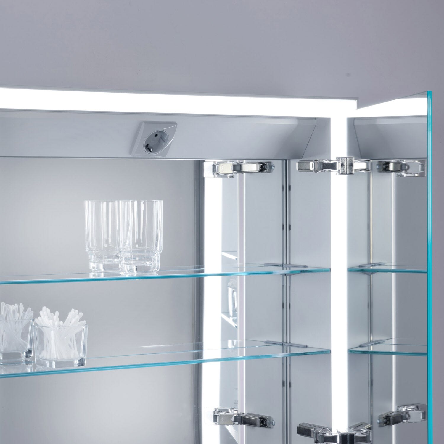 - Großzügiges Stauraumangebot, variable Innenaufteilung, 1 innenliegende Steckdose und Rückwandverspiegelung