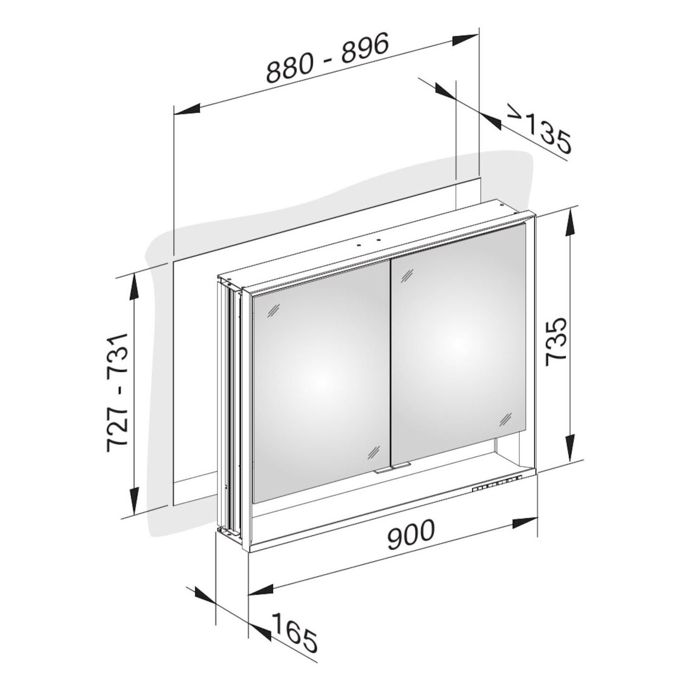 Keuco Royal Lumos Wandeinbau Spiegelschrank 90 x 73,5 cm, 2 Türen, offene Ablage, CH Version