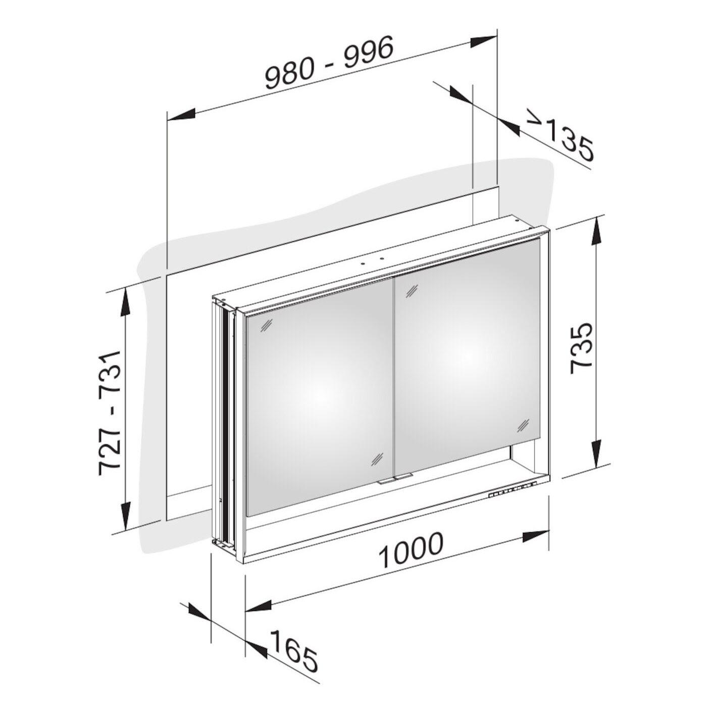 Keuco Royal Lumos Wandeinbau Spiegelschrank 100 x 73,5 cm, 2 Türen, offene Ablage, CH Version