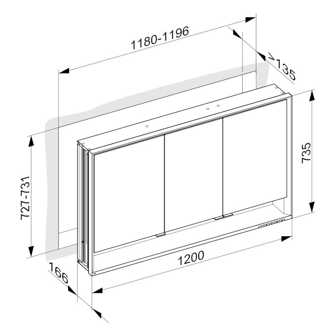 Keuco Royal Lumos Wandeinbau Spiegelschrank 120 x 73,5 cm, 3 Türen, offene Ablage, CH Version