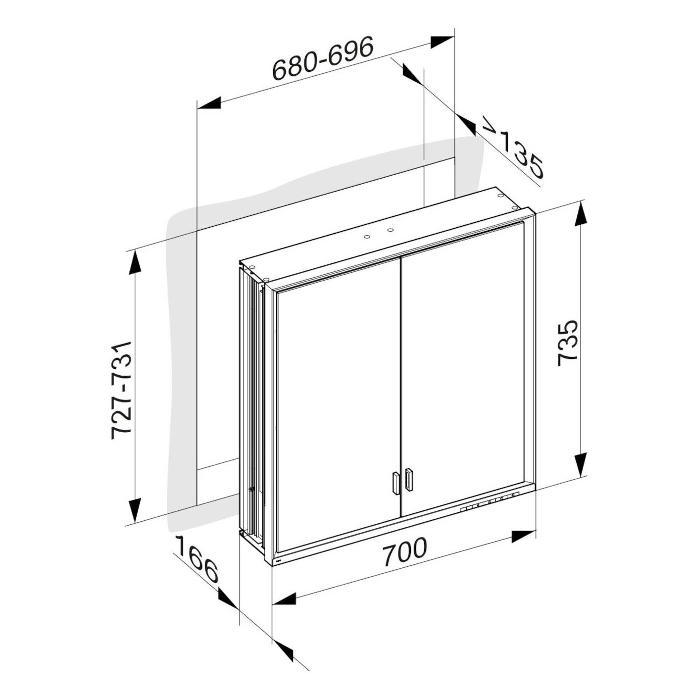 Keuco Royal Lumos Wandeinbau Spiegelschrank 70 x 73,5 cm, 2 Türen, CH Version