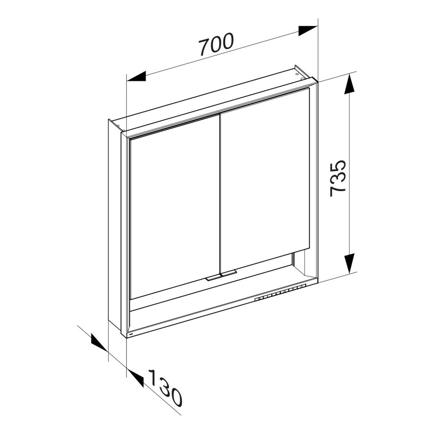 Keuco Royal Lumos Aufputz-Spiegelschrank 70 x 73,5 cm mit LED-Beleuchtung und Spiegelheizung, 2 Türen