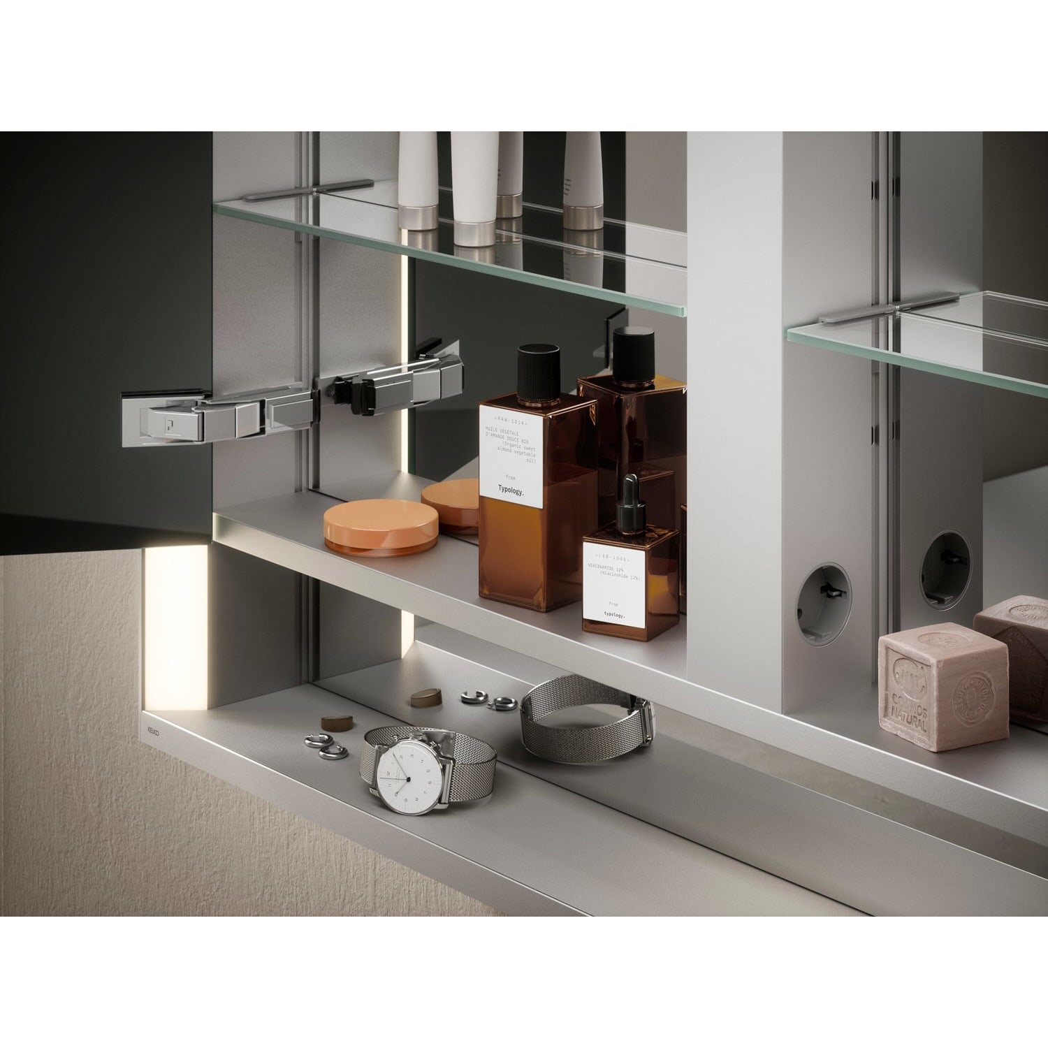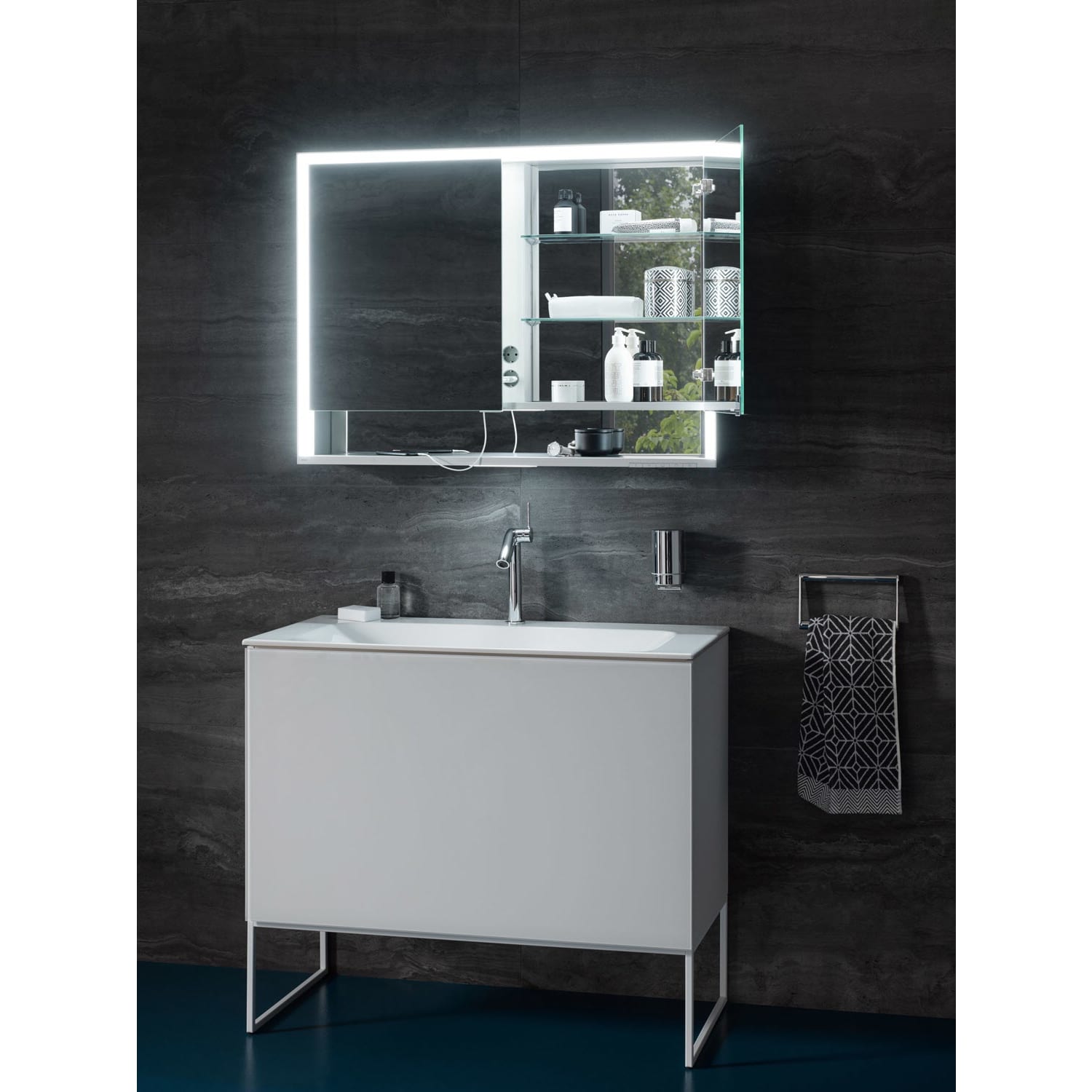 - Rahmenbeleuchtung (seitlich und oben) und Waschtisch-/Fachbeleuchtung separat dimmbar und schaltbar