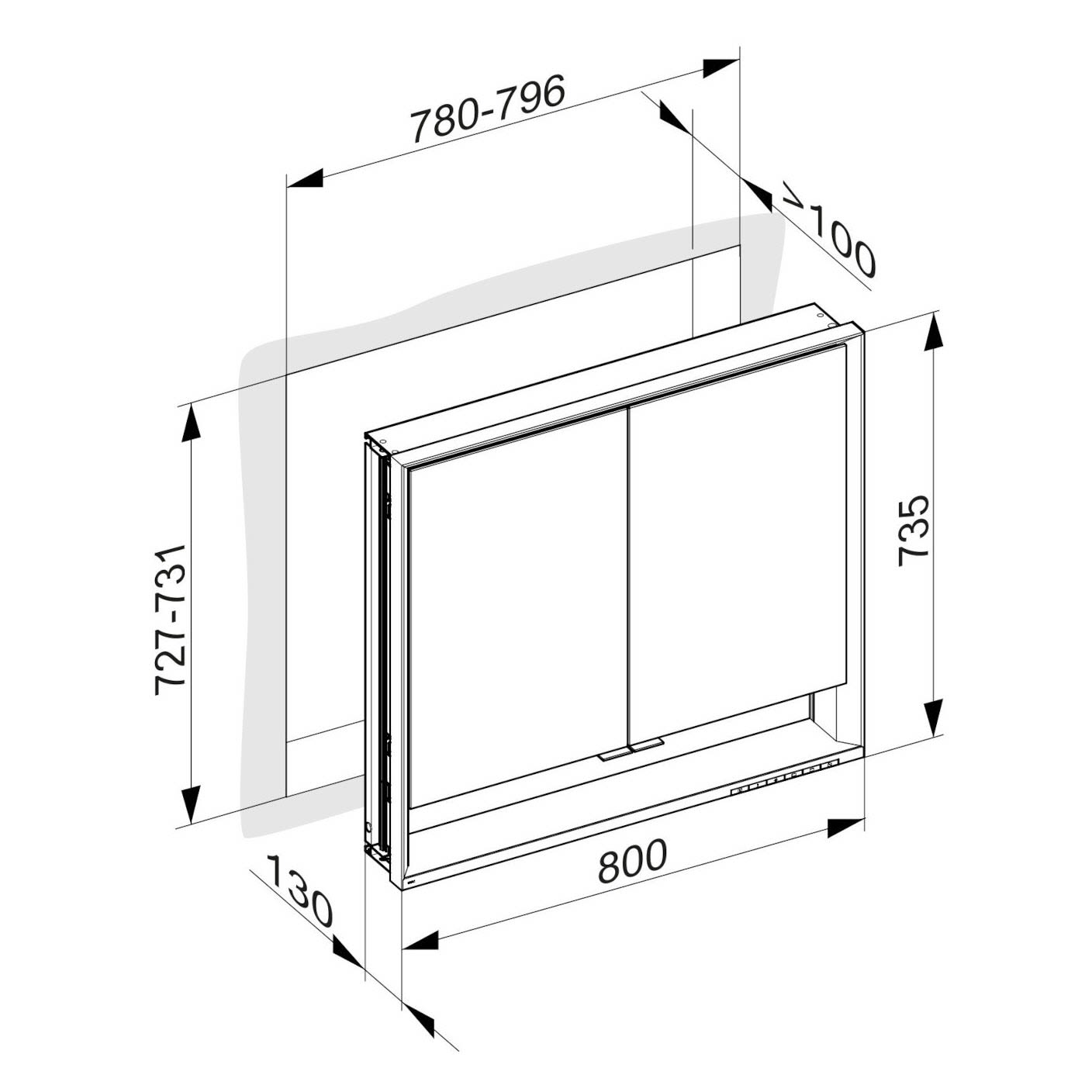 - Spiegelschrank zum Wandeinbau. Wandausschnitt: B: 78-79,6 T: >10 H: 72,7-73,1 cm