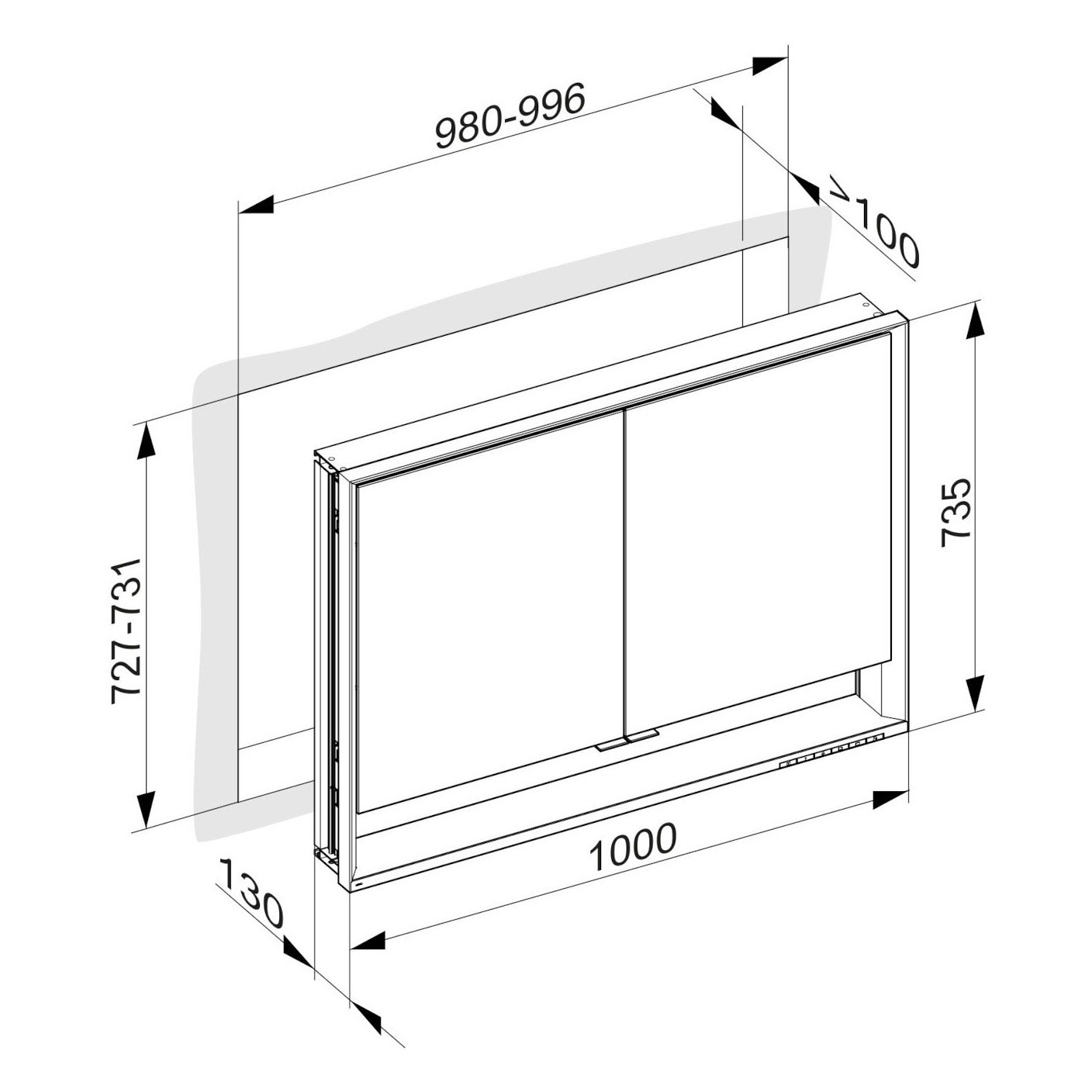 - Spiegelschrank zum Wandeinbau. Wandausschnitt: B: 98-99,6 T: >10 H: 72,7-73,1 cm
