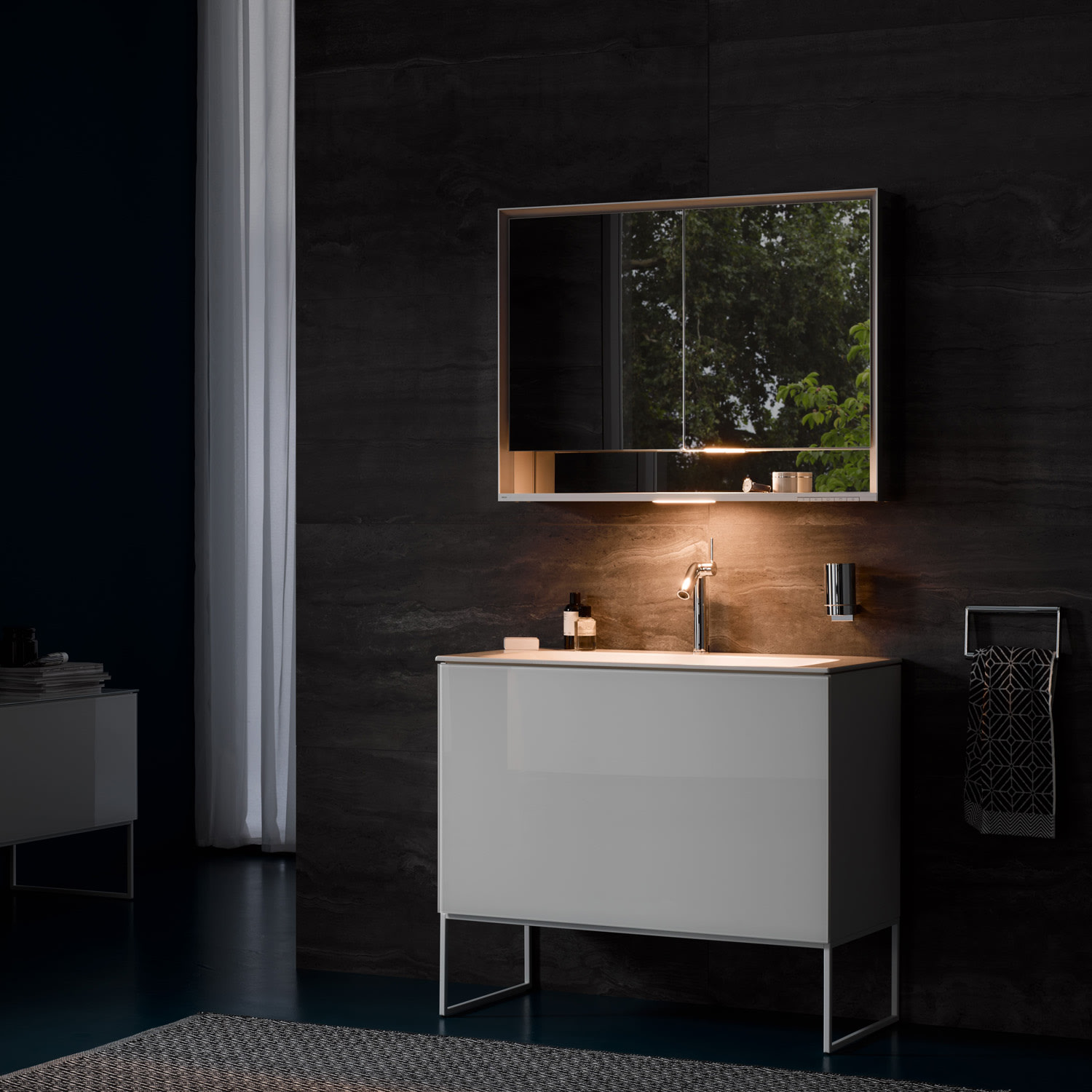 - Hauptbeleuchtung und Waschtisch- / Fachbeleuchtung separat dimmbar und schaltbar