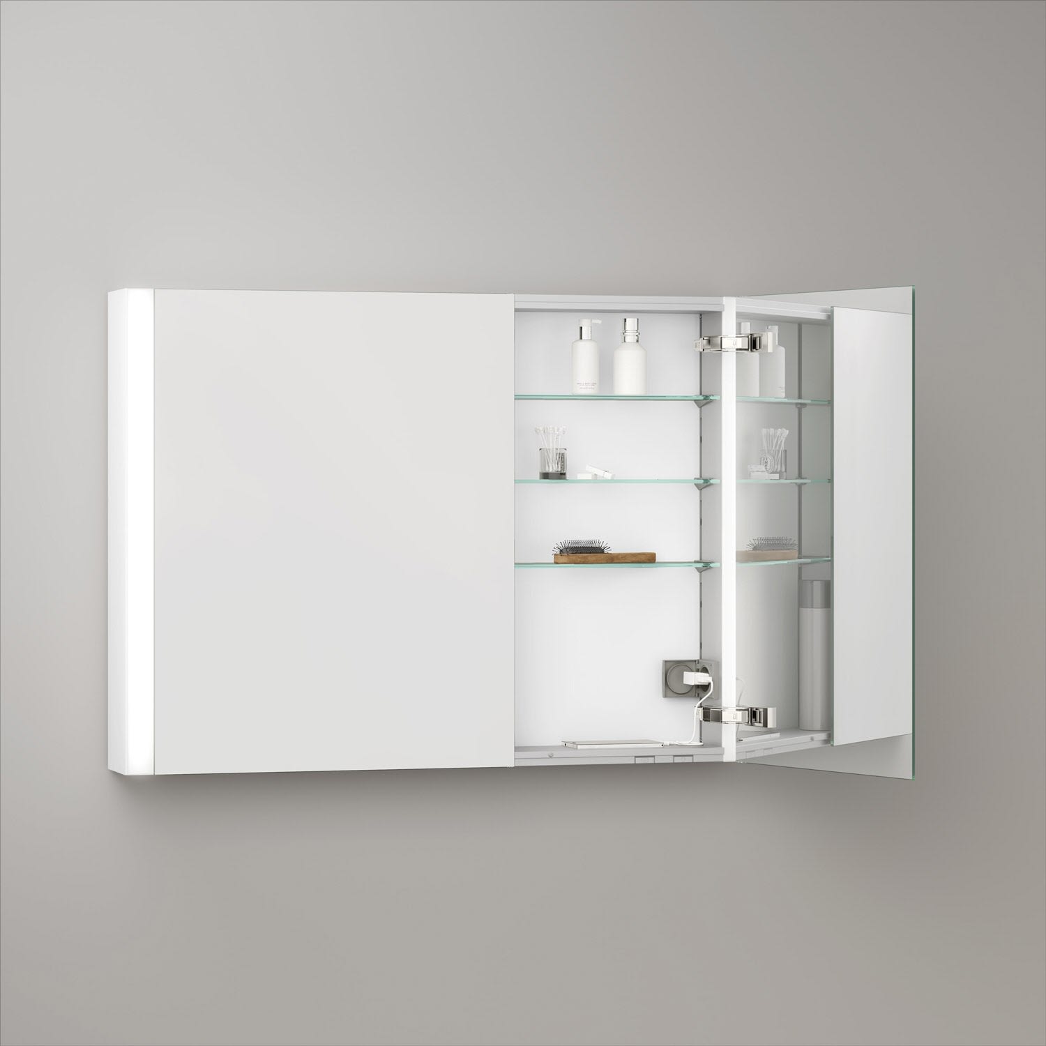 Keuco Royal Metis LED Aufputz-Spiegelschrank 100 x 71 cm, 2 Türen mit Spiegelheizung, asymmetrisch