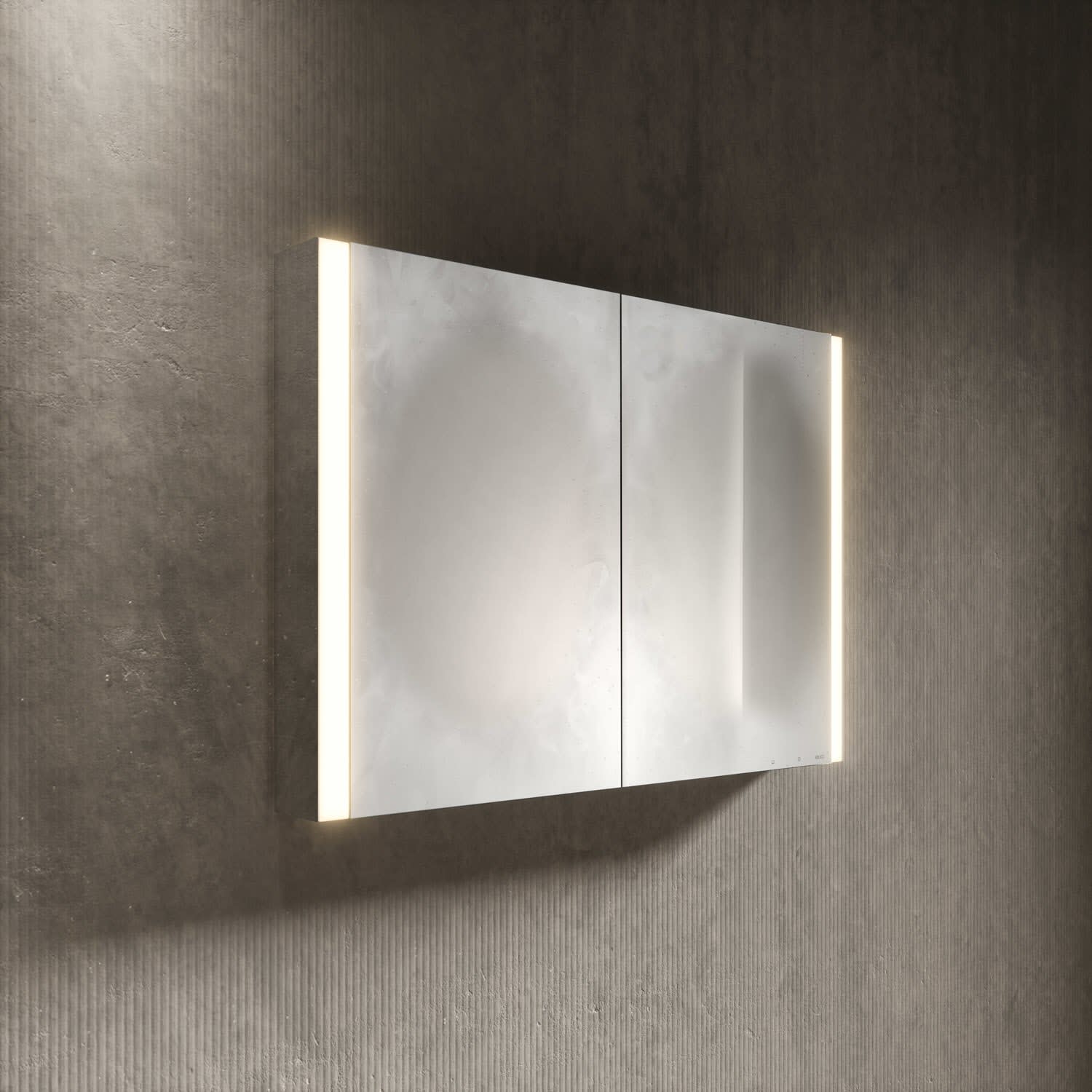 Keuco Royal Metis LED Aufputz-Spiegelschrank 80 x 71 cm, 2 Türen mit Spiegelheizung, französiche Ausführung