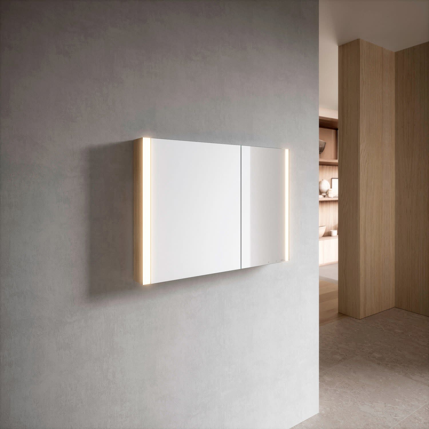 Keuco Royal Metis LED Aufputz-Spiegelschrank 100 x 71 cm, 2 Türen mit Spiegelheizung, französiche Ausführung
