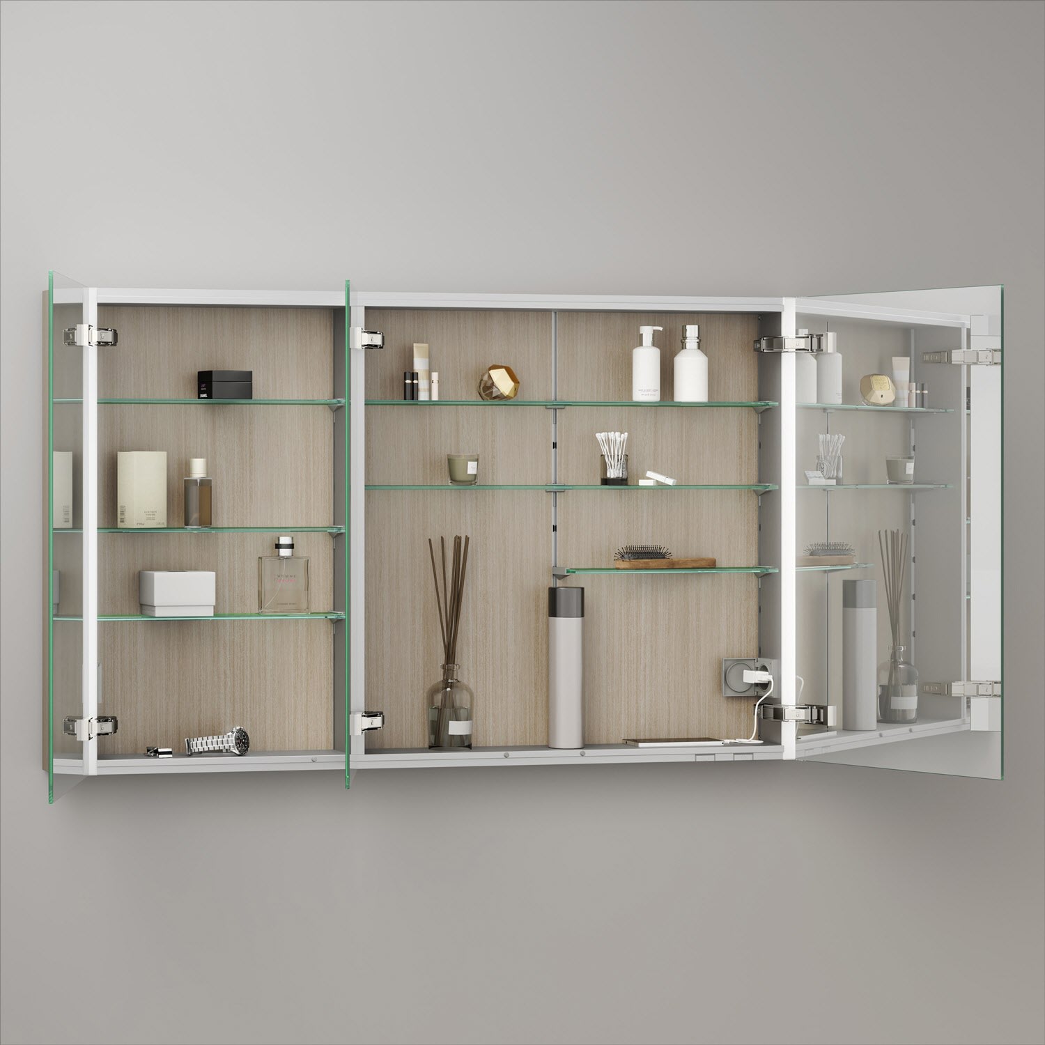Keuco Royal Metis LED Aufputz-Spiegelschrank 120 x 71 cm, 3 Türen mit Spiegelheizung, französiche Ausführung