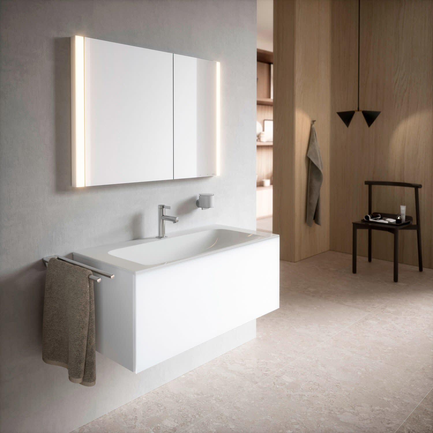 Keuco Royal Metis LED Unterputz-Spiegelschrank 100 x 71 cm, 2 Türen mit Spiegelheizung, asymmetrisch, französiche Ausführung
