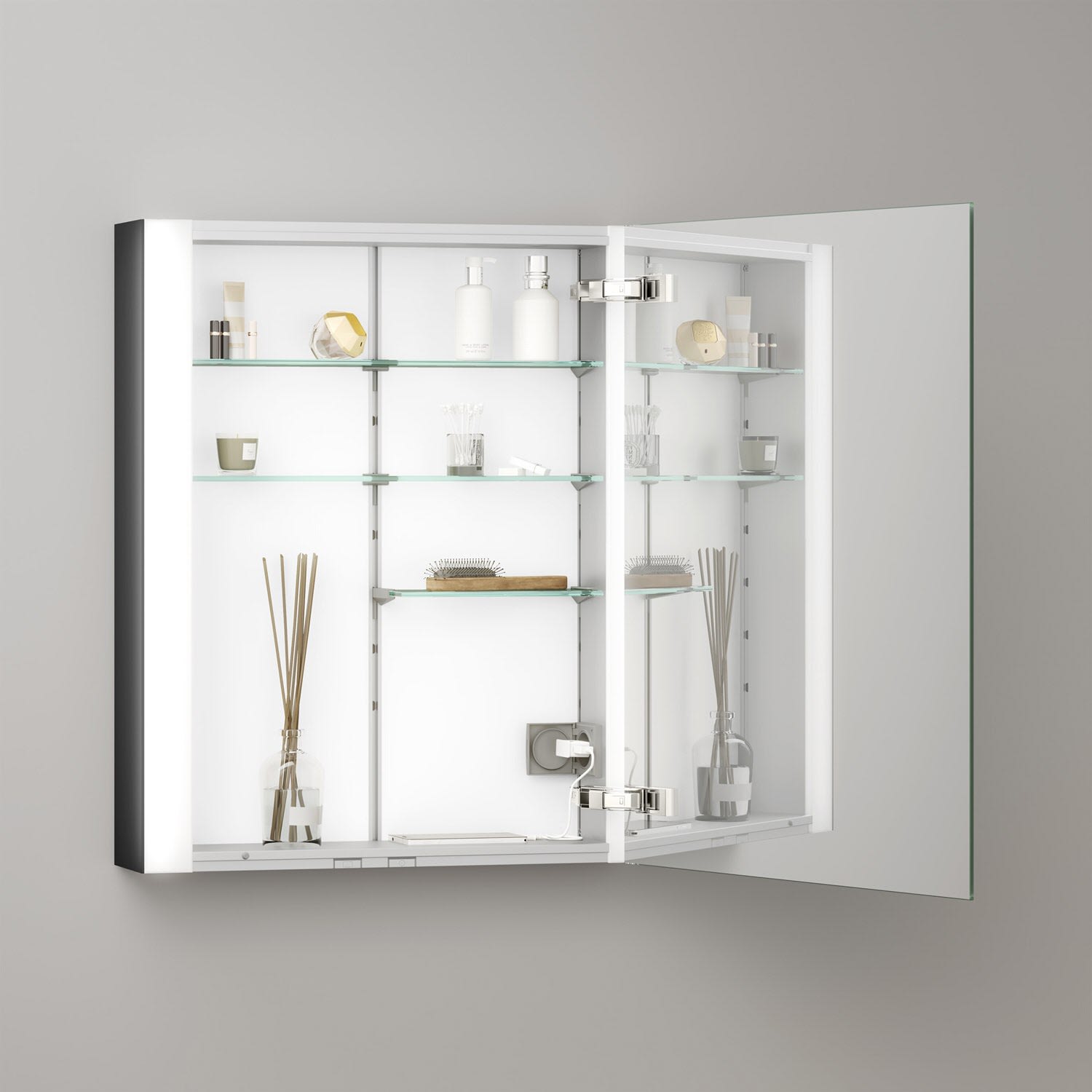 Keuco Royal Metis LED Aufputz-Spiegelschrank 60 x 71 cm mit Spiegelheizung, Türanschlag rechts, schweizer Ausführung