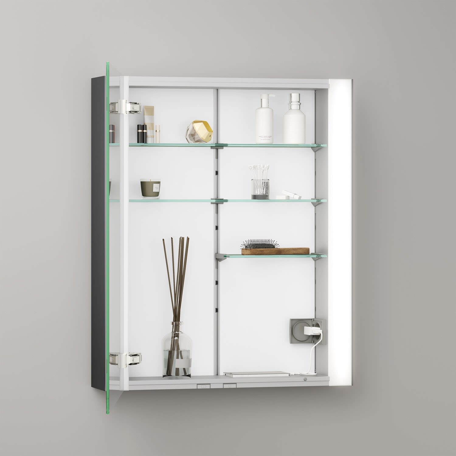 Keuco Royal Metis LED Aufputz-Spiegelschrank 60 x 71 cm mit Spiegelheizung, Türanschlag links, schweizer Ausführung