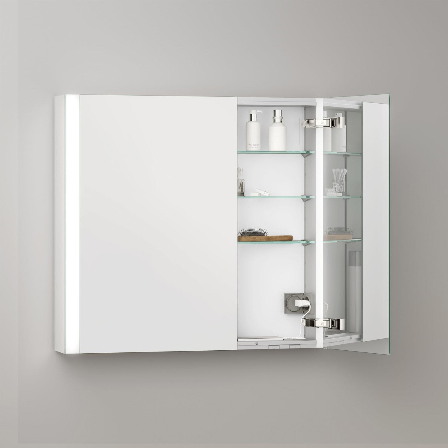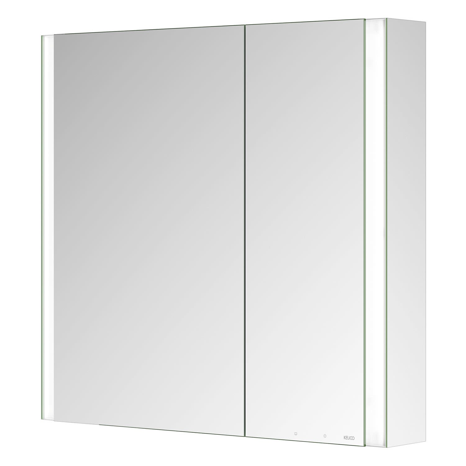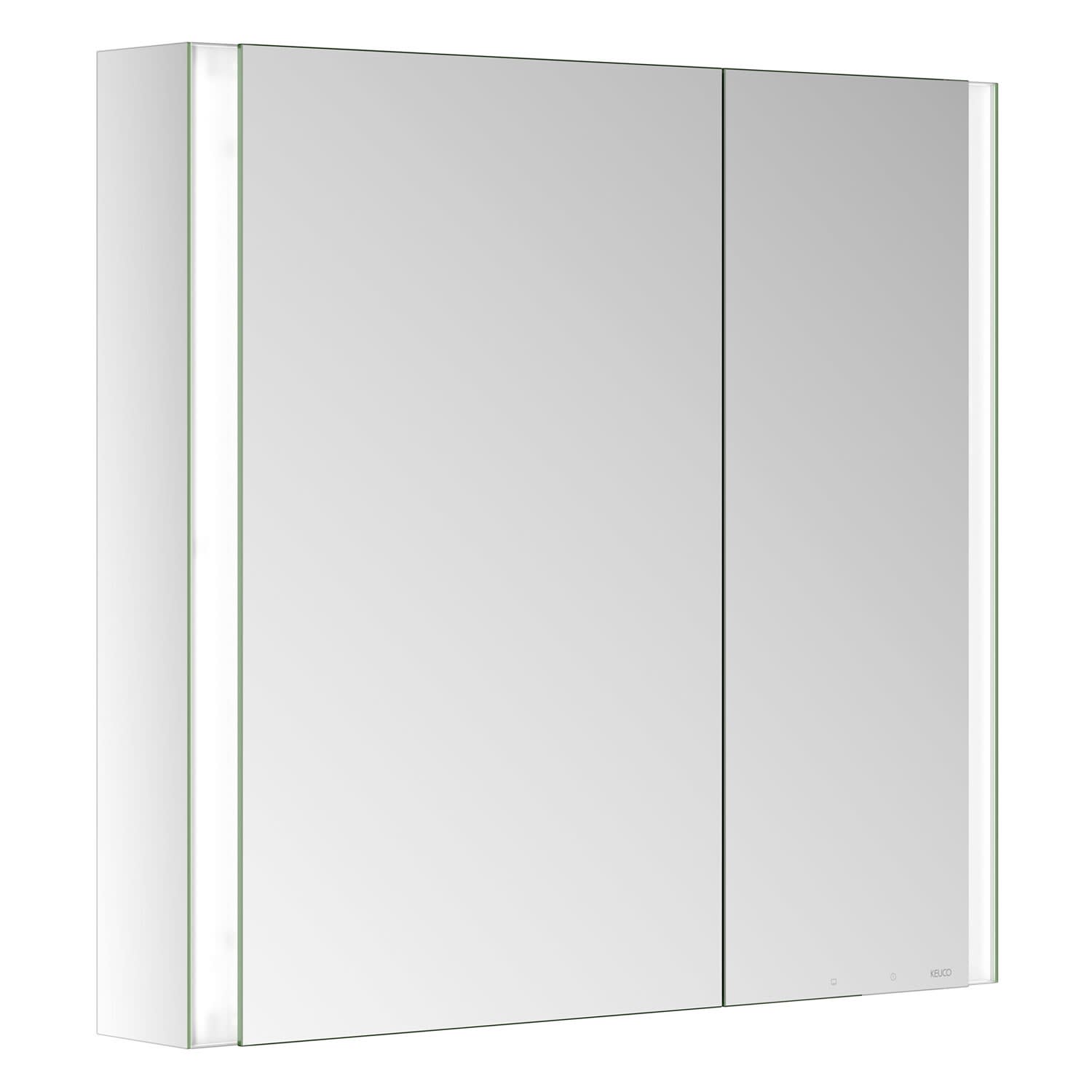 Keuco Royal Metis LED Aufputz-Spiegelschrank 80 x 71 cm, 2 Türen mit Spiegelheizung, asymmetrisch, schweizer Ausführung