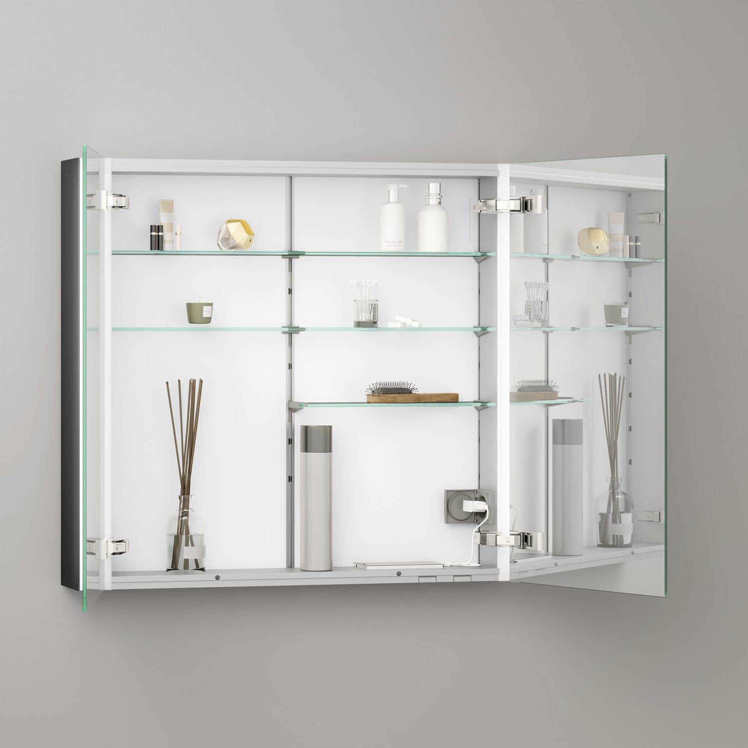 Keuco Royal Metis LED Aufputz-Spiegelschrank 80 x 71 cm, 2 Türen mit Spiegelheizung, schweizer Ausführung