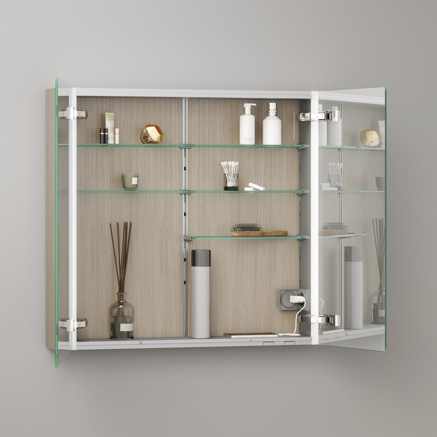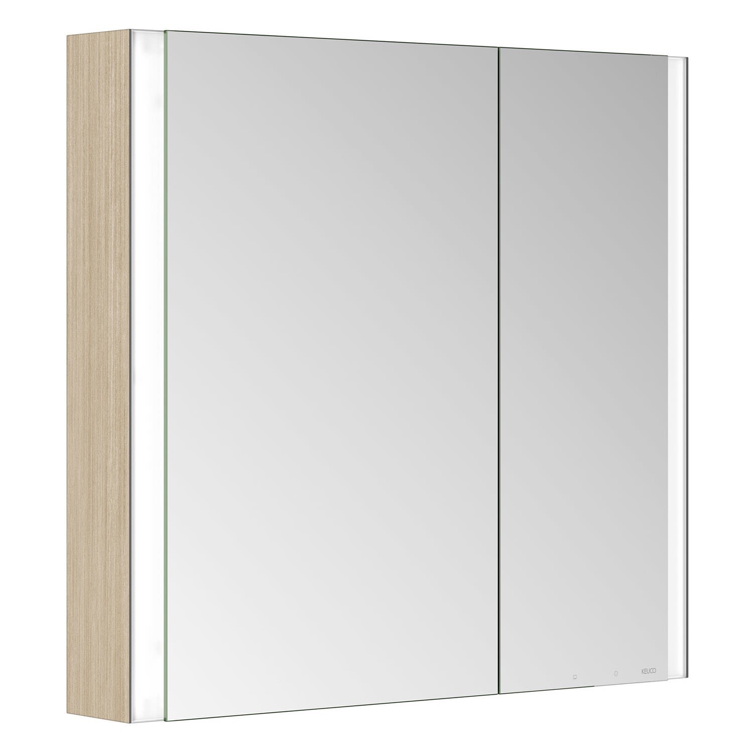 Keuco Royal Metis LED Aufputz-Spiegelschrank 80 x 71 cm, 2 Türen mit Spiegelheizung, asymmetrisch, schweizer Ausführung