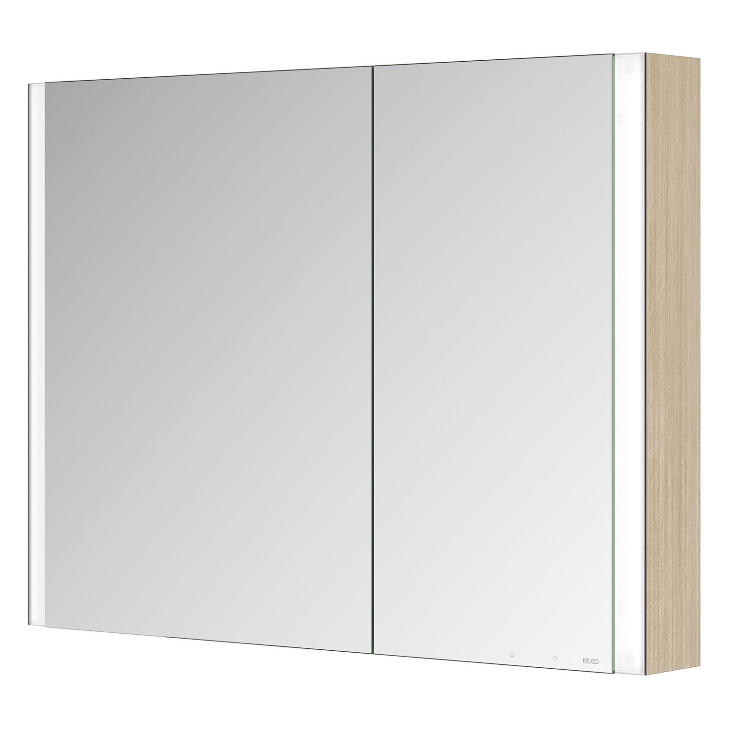 Keuco Royal Metis LED Aufputz-Spiegelschrank 100 x 71 cm, 2 Türen mit Spiegelheizung, asymmetrisch, schweizer Ausführung