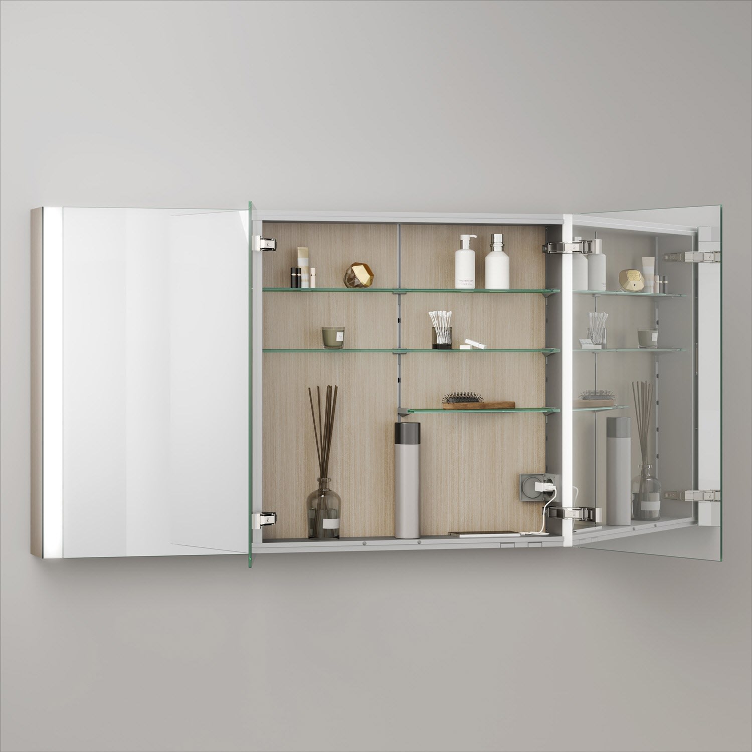 Keuco Royal Metis LED Aufputz-Spiegelschrank 120 x 71 cm, 3 Türen mit Spiegelheizung, schweizer Ausführung