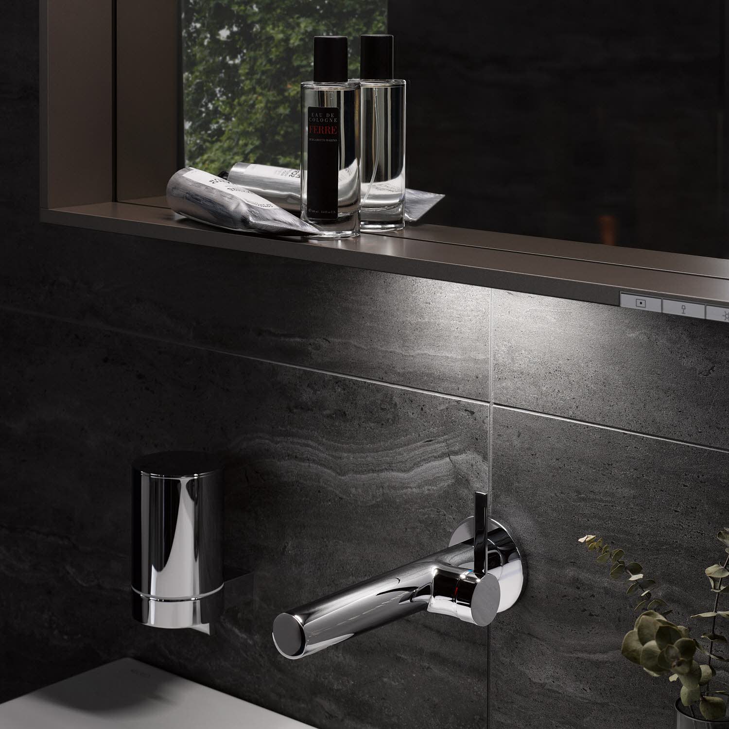 - Hauptlicht (Ober- und Wandbeleuchtung) und Waschtischbeleuchtung separat stufenlos dimmbar u. ein-/ausschaltbar