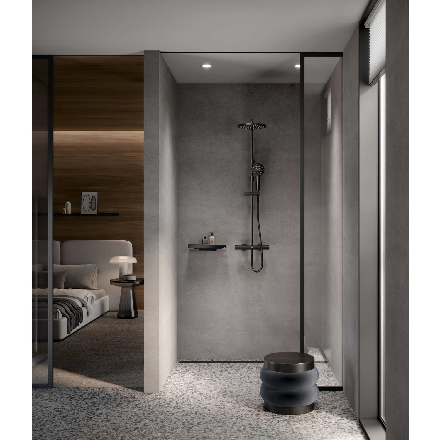 - Kopfbrause (rund, 250 mm) höhenverstellbar und schwenkbar
