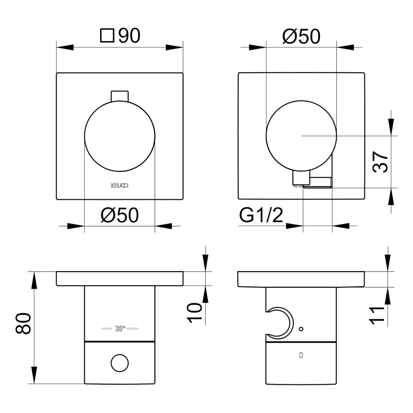 Keuco EDITION 11 Thermostatarmatur Set für 2 Verbraucher, mit Schlauchanschluss und Brausehalter