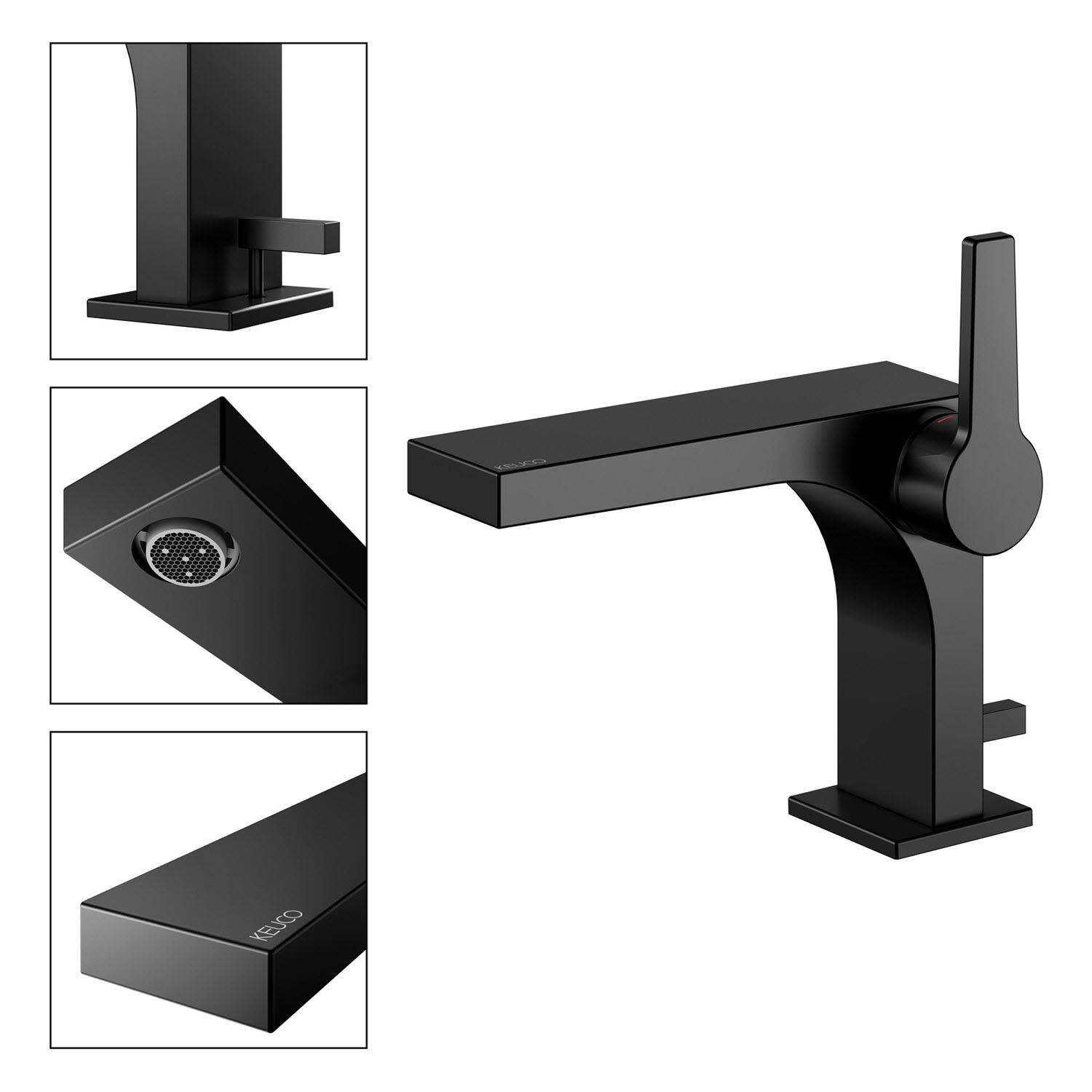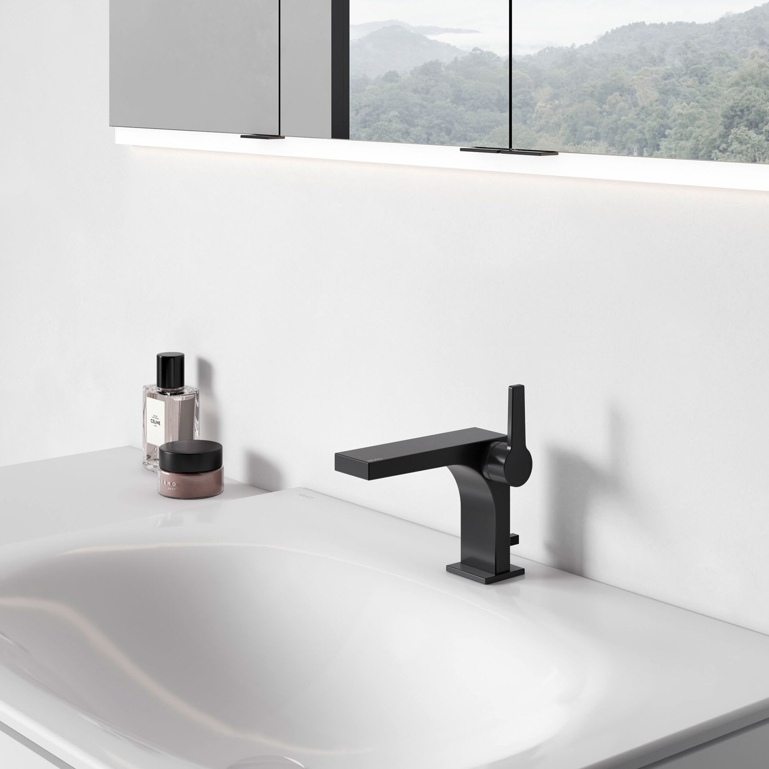 Keuco EDITION 11 Black Selection Einhebel-Waschtischmischer 110, mit Zugstangen-Ablaufgarnitur