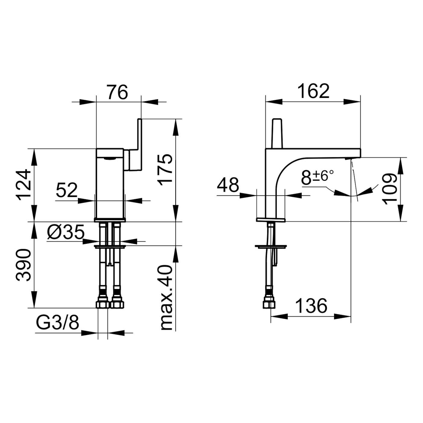 Steinberg Serie 342 Waschtisch-Einhebelmischer ohne Ablaufgarnitur