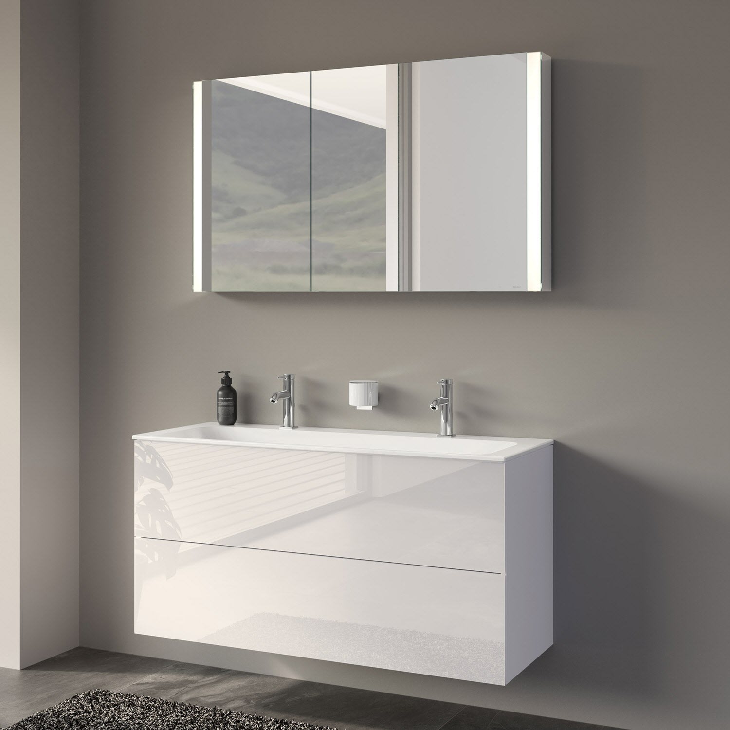 Villeroy & Boch Finero Waschtischunterschrank 130 cm mit Doppelwaschtisch und Spiegelschrank, 4 Auszüge