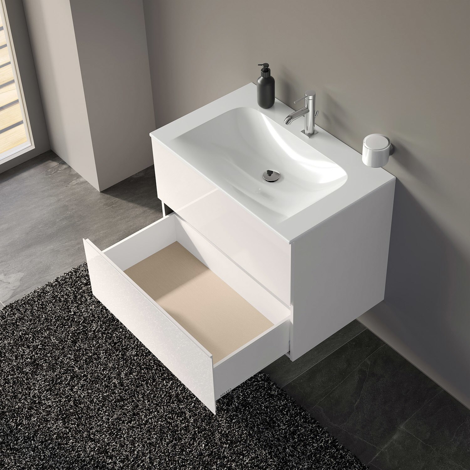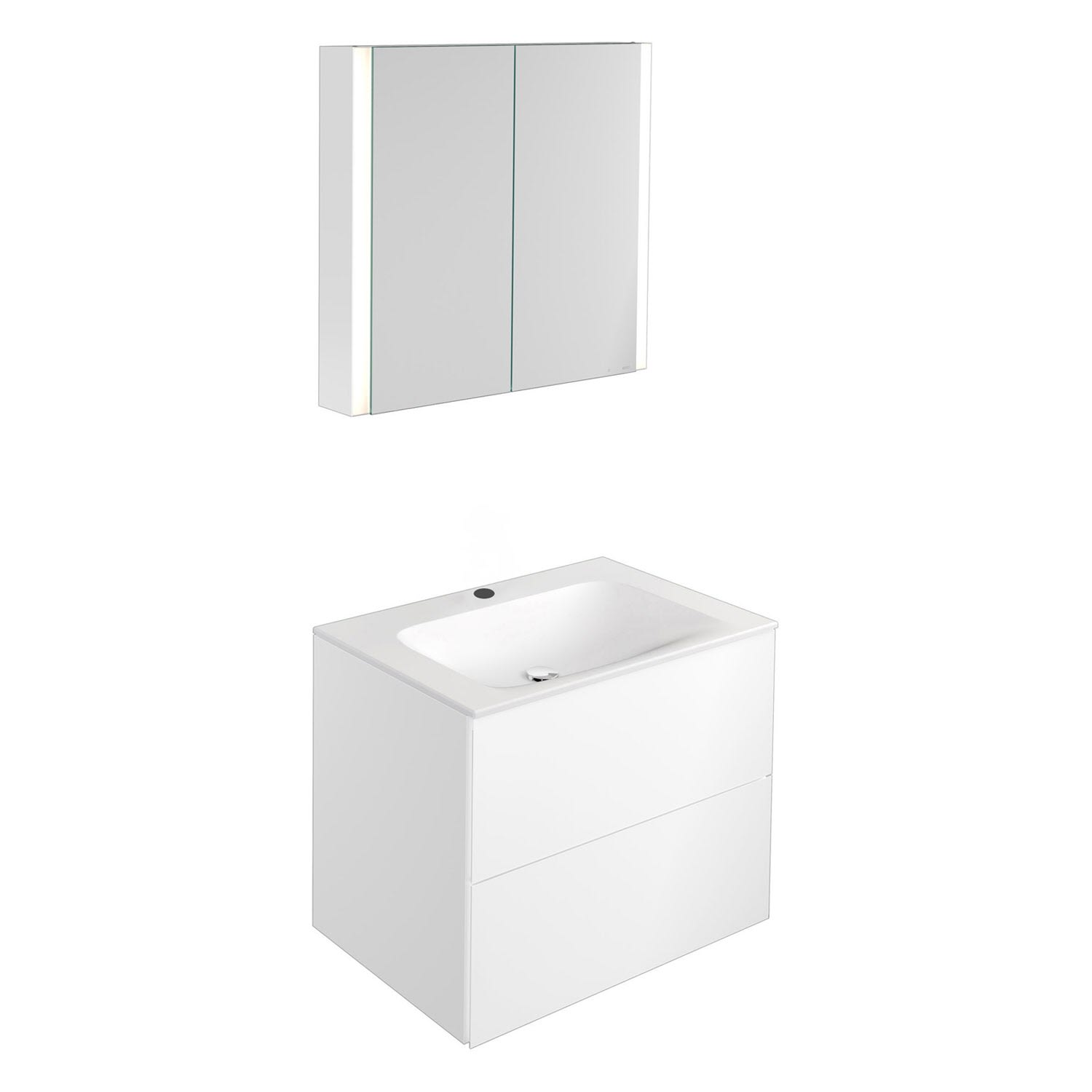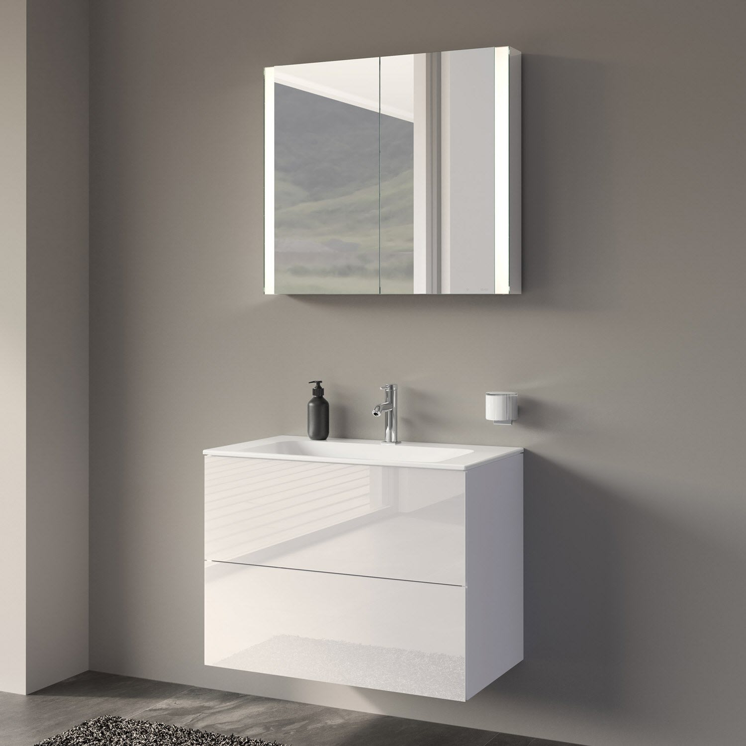 Keuco Apollo Keramik-Waschtisch mit Waschtischunterschrank und LED-Spiegelschrank 80 cm, 2 Auszüge