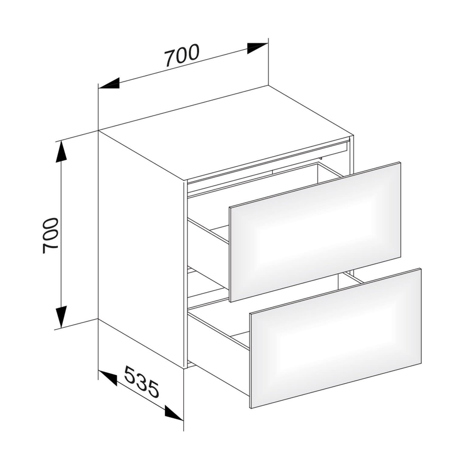 - Front und Korpus aus mitteldichter Holzfaserplatte (MDF)