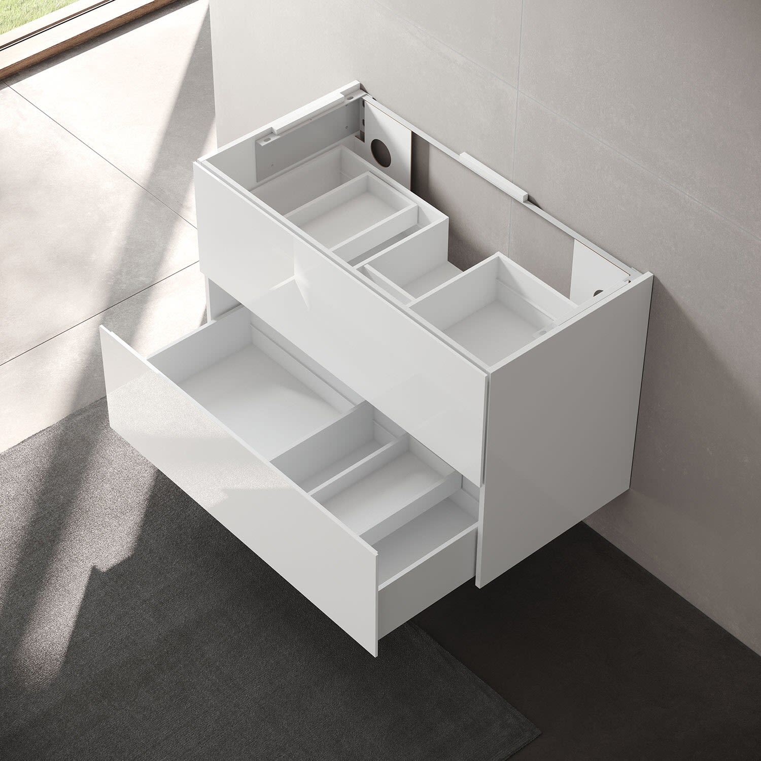 - inkl. 2 verschiebbaren Aufbewahrungsboxen 19 x 7 x 41,3 cm zur individuellen Stauraumnutzung