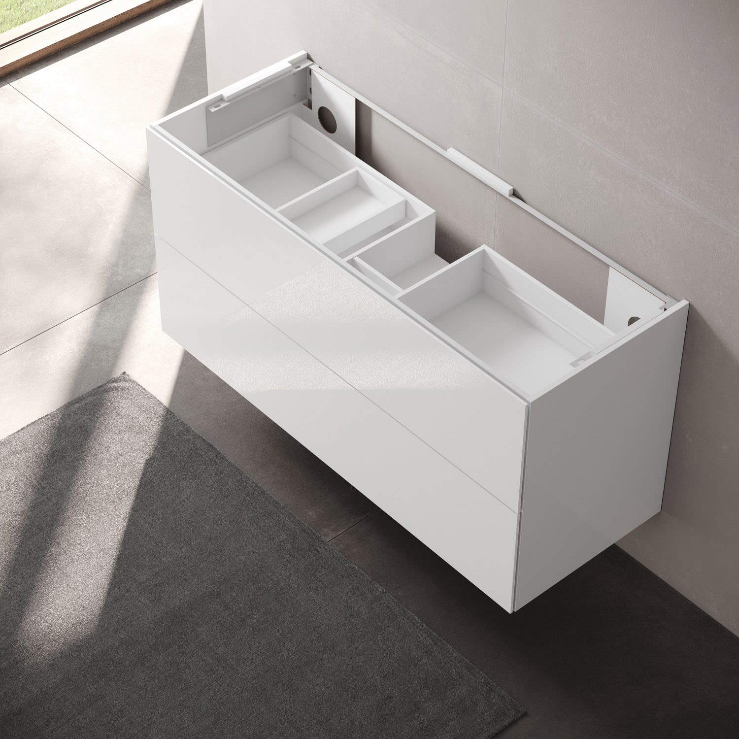 - Waschtischunterschränke der Edition 11 können auch als Anbaumöbel direkt mit einem Sideboard verbunden werden.