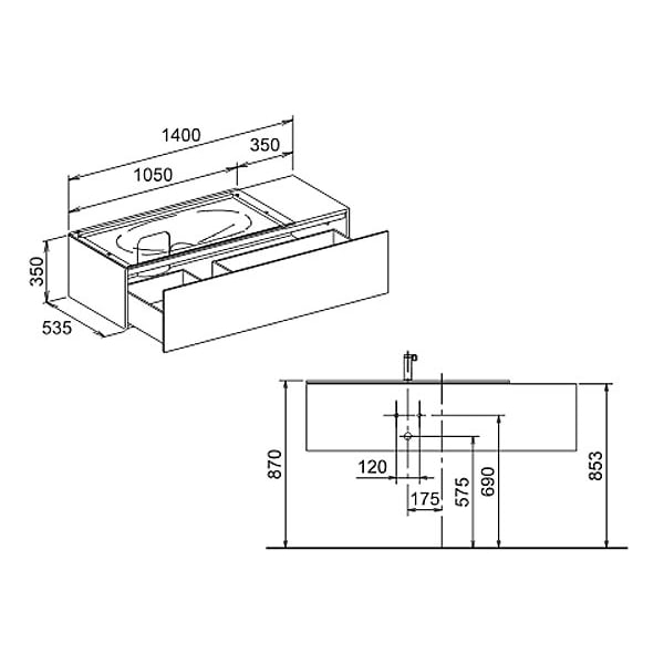 B: 140 T: 53,5 H: 35 cm