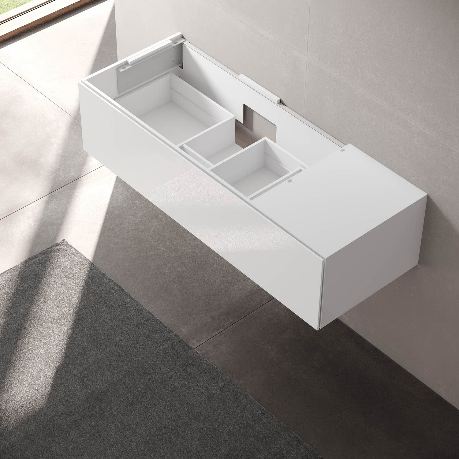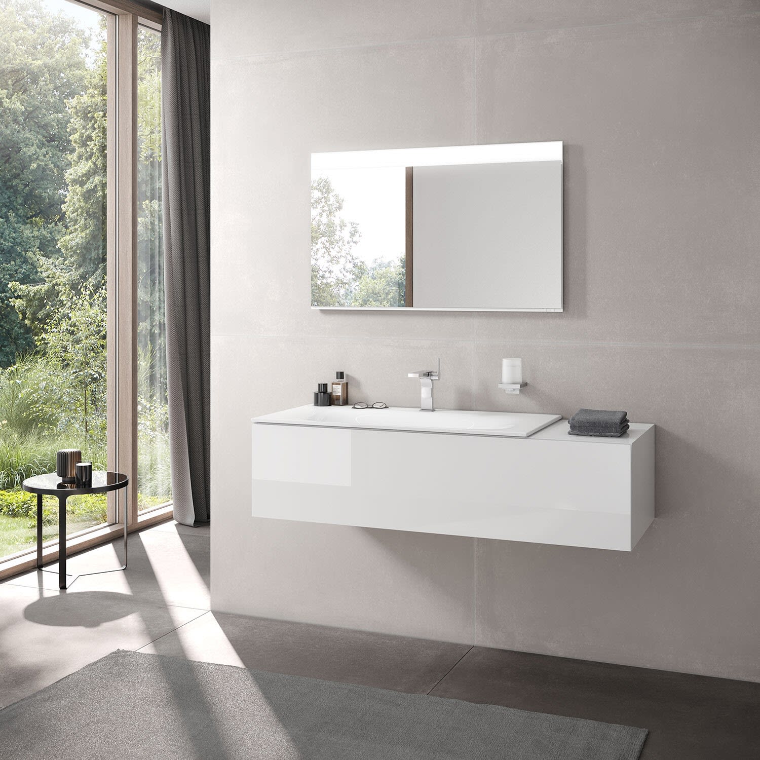 - Waschtischunterschränke der Edition 11 können auch als Anbaumöbel direkt mit einem Sideboard verbunden werden.