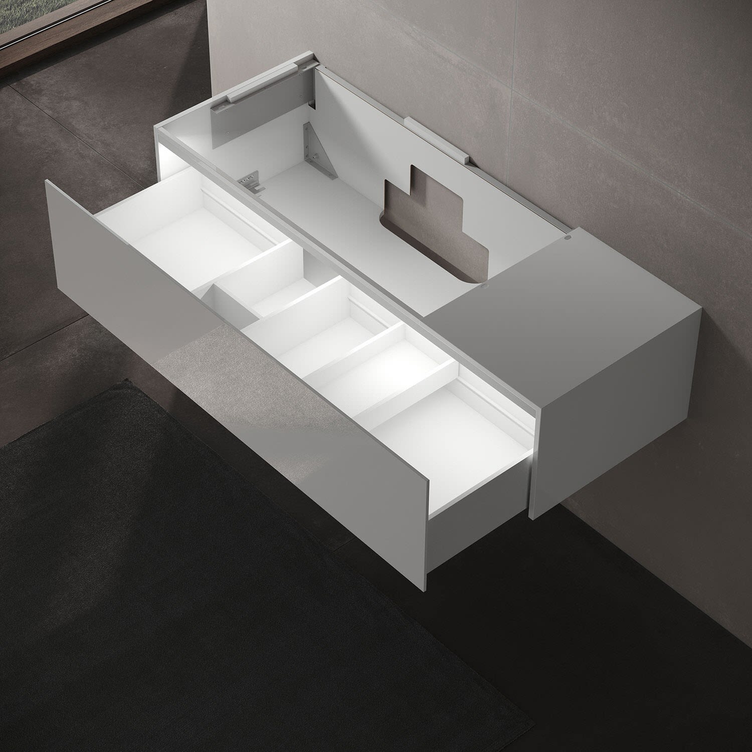 - Für die Oberflächen-Ausführung Front Glas / Korpus Lack seidenmatt ist zur Komplettierung die Abdeckplatte (Art.31320xx9001) zwingend erforderlich - Bitte separat bestellen!