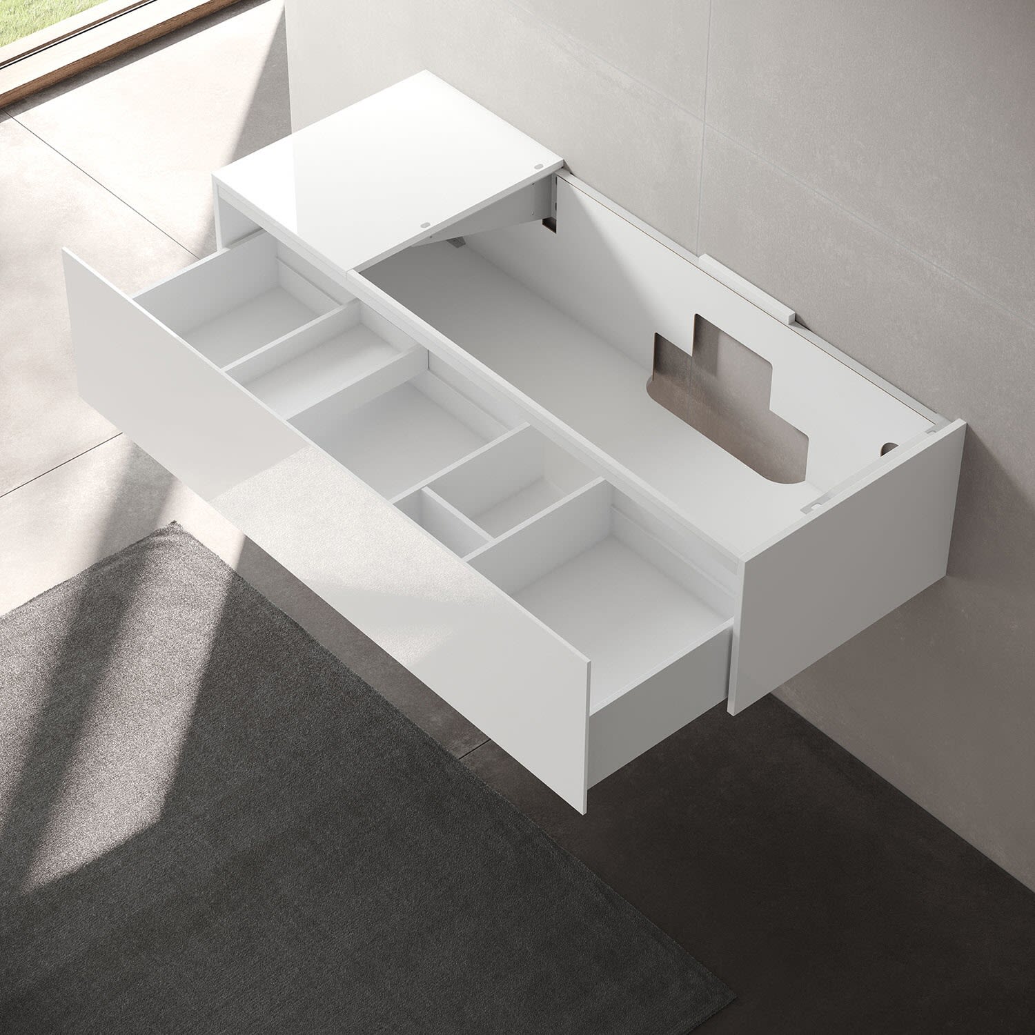 - inkl. 2 verschiebbaren Aufbewahrungsboxen 19 x 7 x 41,3 cm zur individuellen Stauraumnutzung