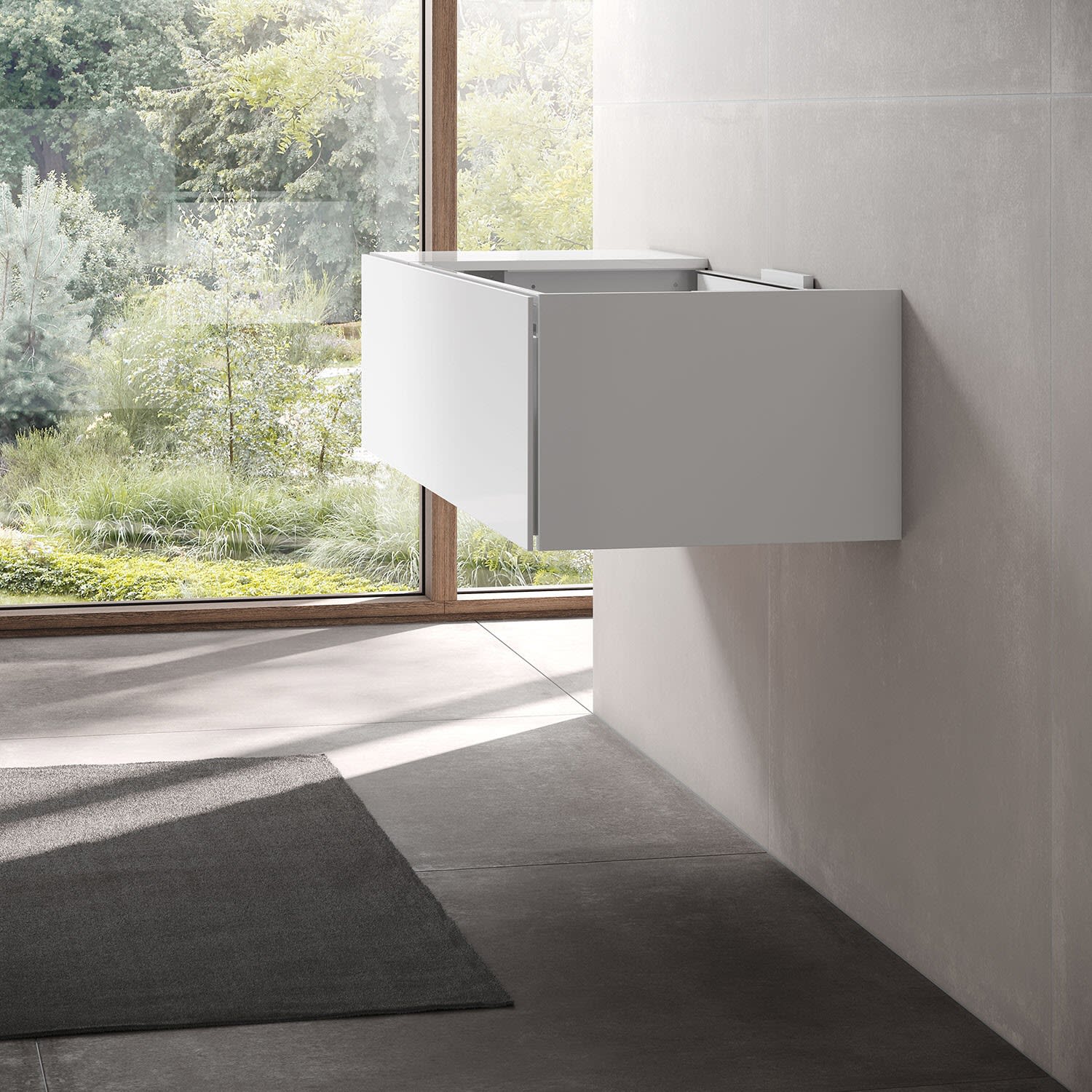 - Waschtischunterschränke der Edition 11 können auch als Anbaumöbel direkt mit einem Sideboard verbunden werden.