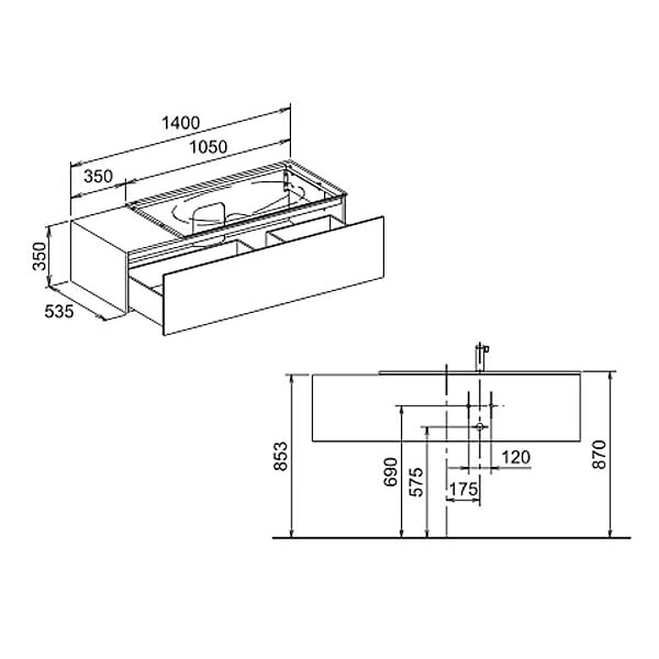 B: 140 T: 53,5 H: 35 cm