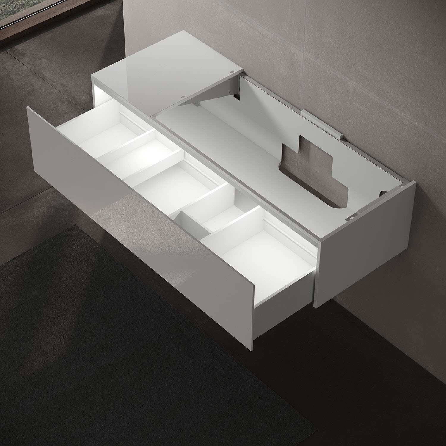 - Waschtischunterschränke der Edition 11 können auch als Anbaumöbel direkt mit einem Sideboard verbunden werden.