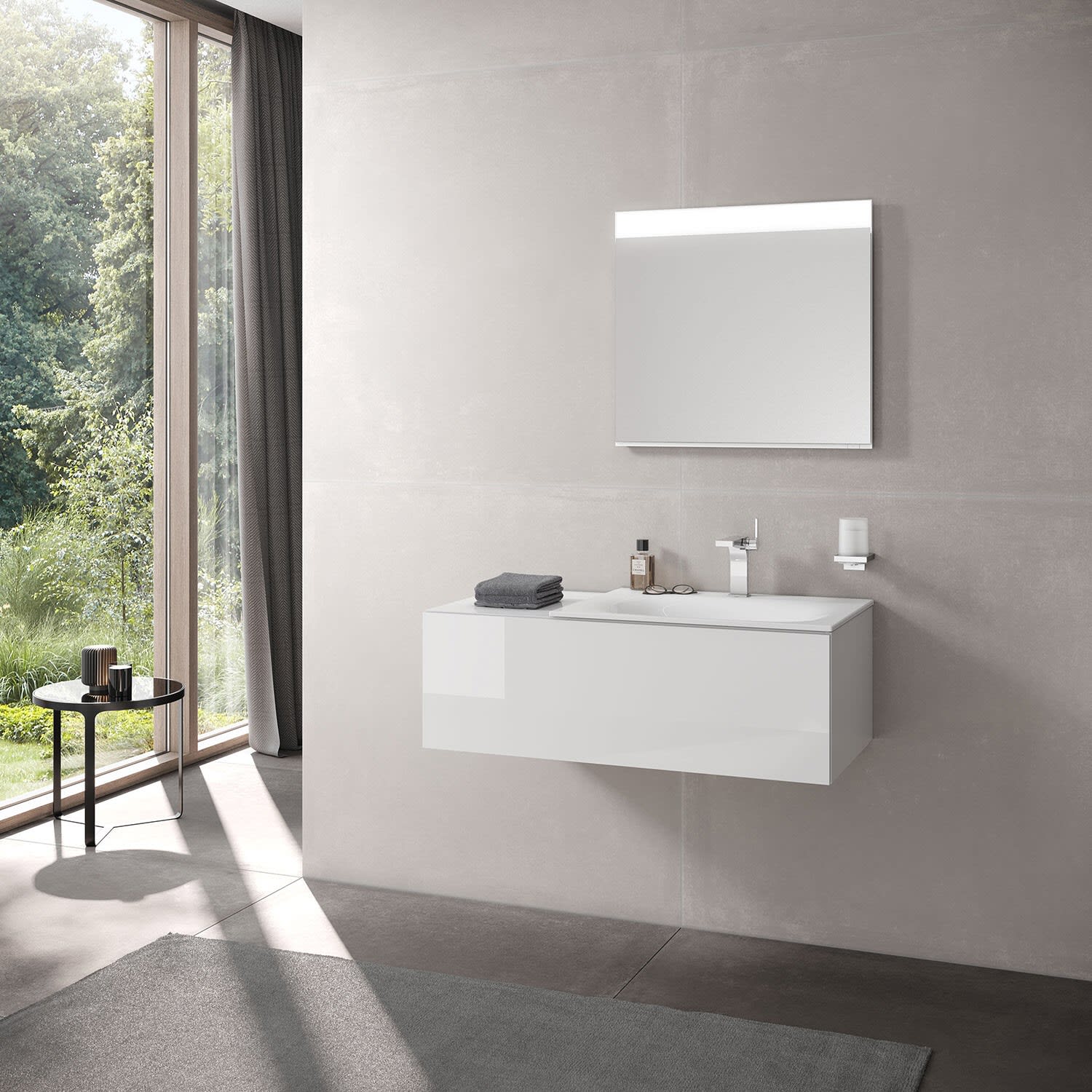 - Waschtischunterschränke der Edition 11 können auch als Anbaumöbel direkt mit einem Sideboard verbunden werden.