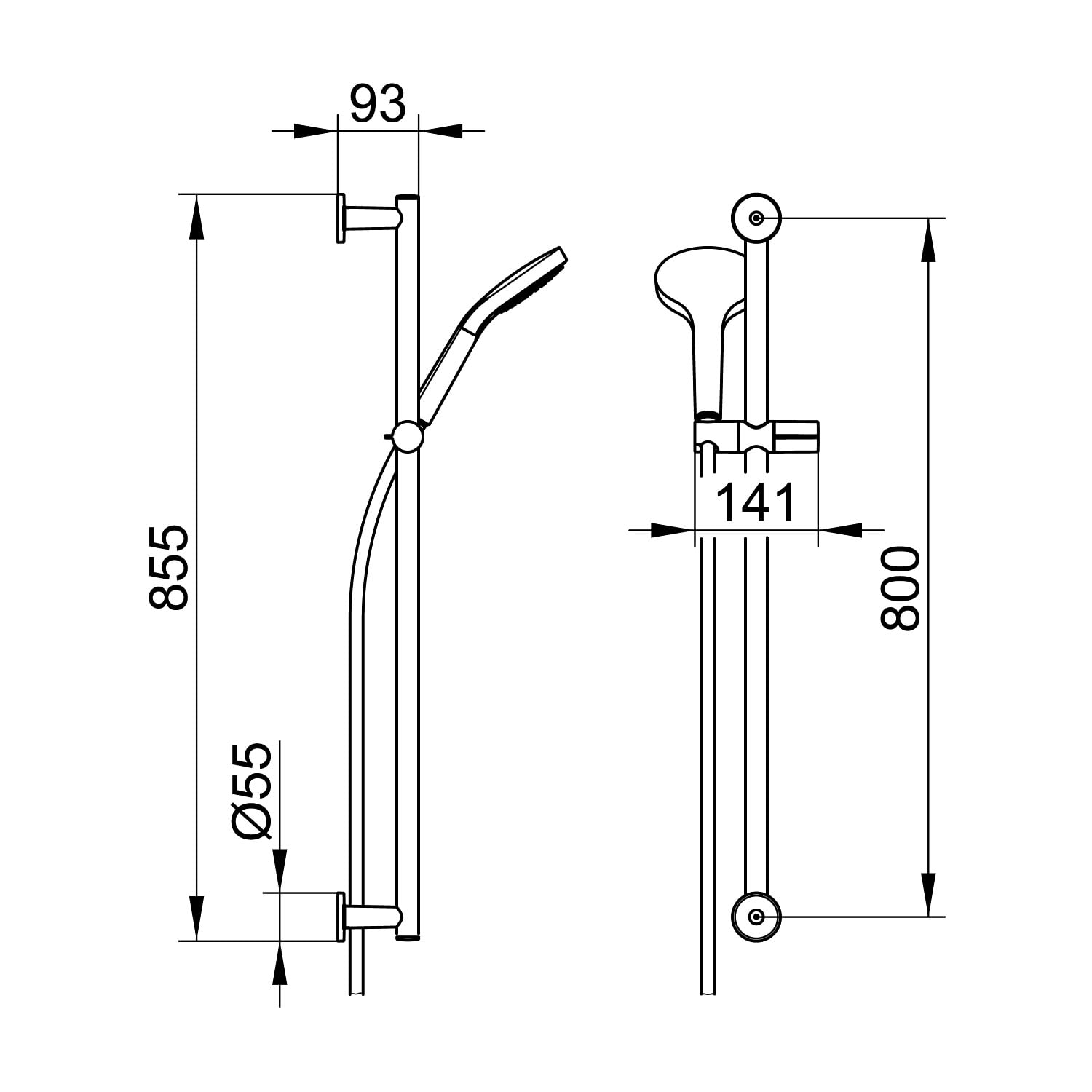 - Brausestange inkl. Brauseschieber, Höhenverstellung mit Griff
