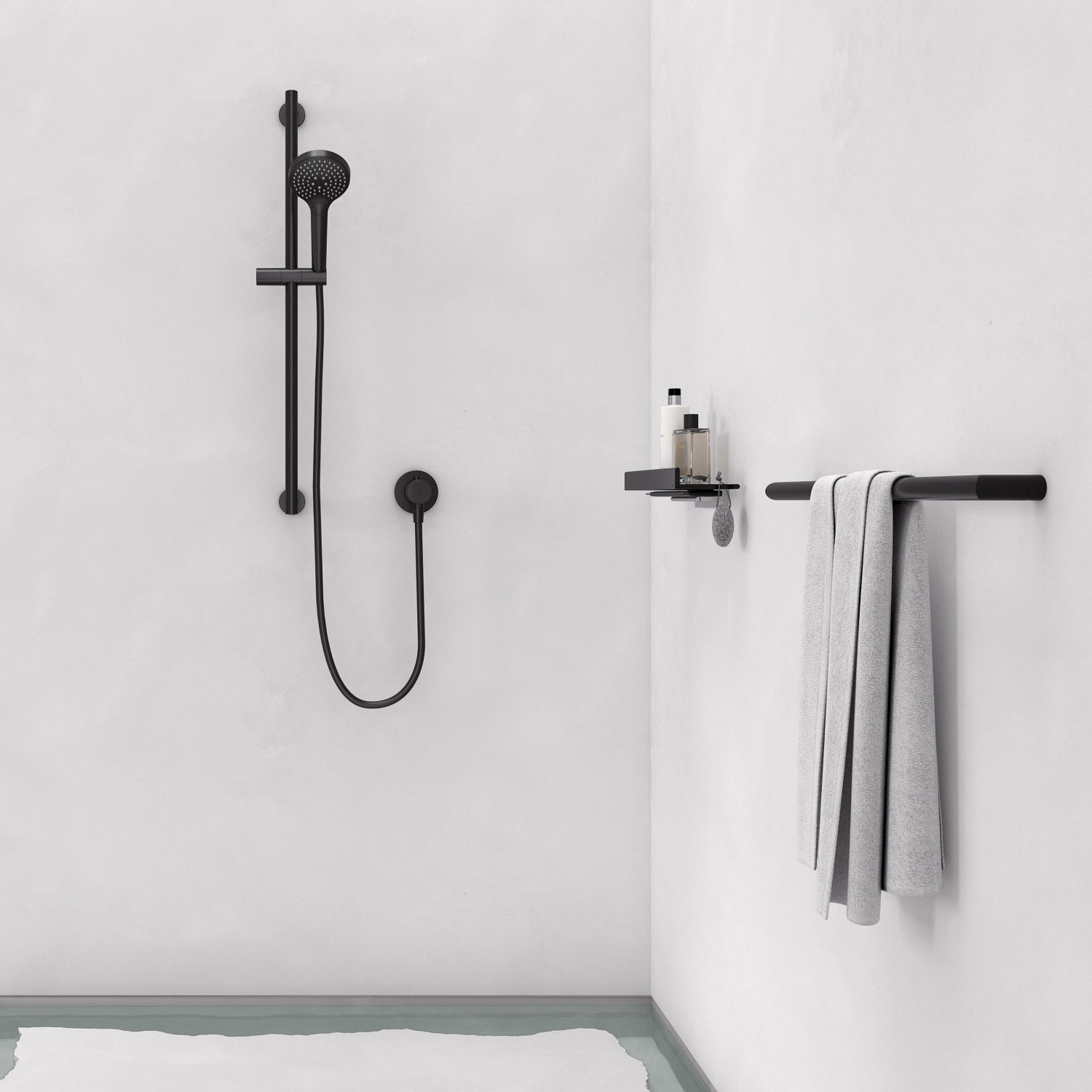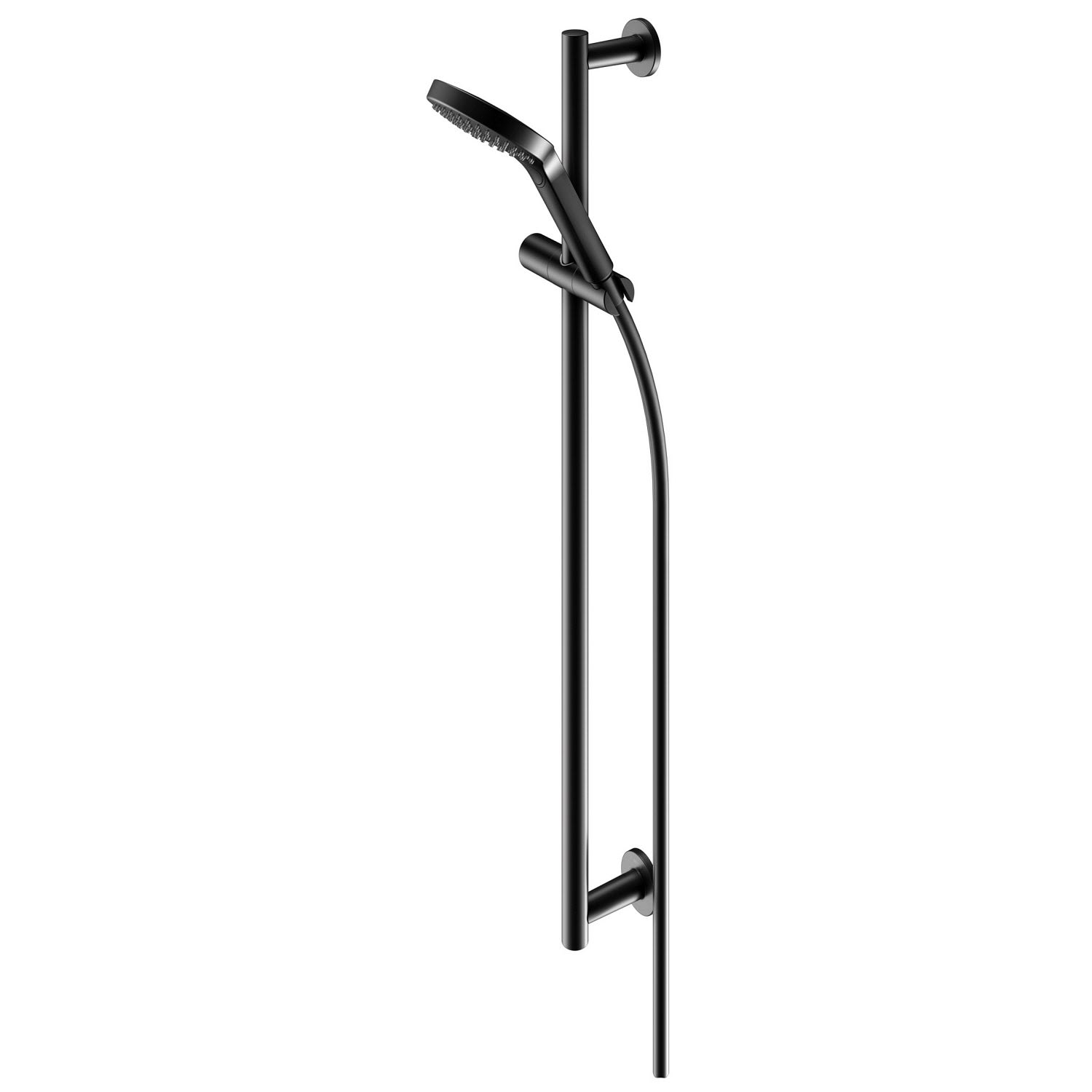 Keuco IXMO Black Selection Brause-Set mit Brausestange, Brauseschieber, Schlauch und Handbrause, runde Rosetten
