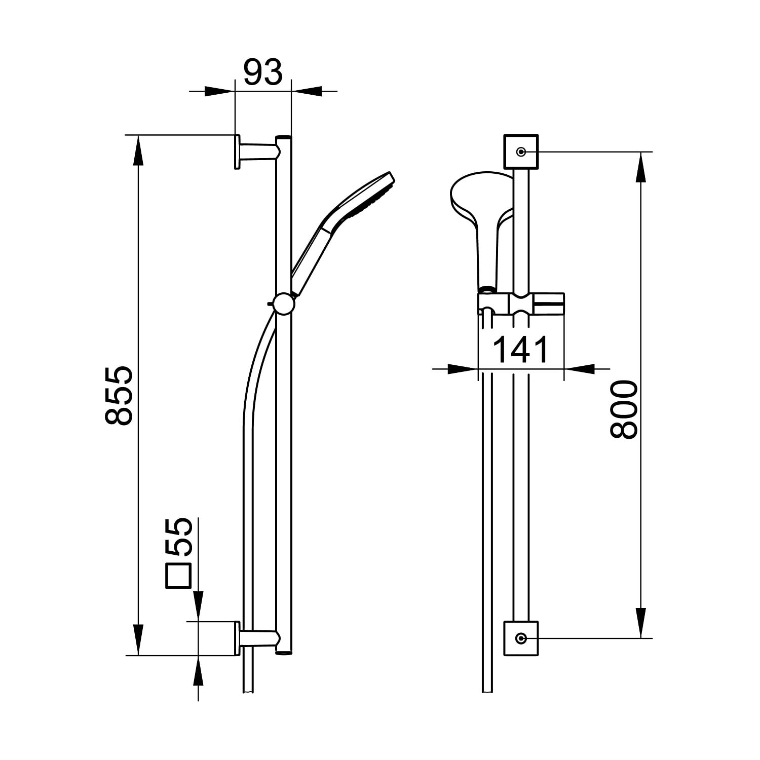- Brausestange inkl. Brauseschieber, Höhenverstellung mit Griff