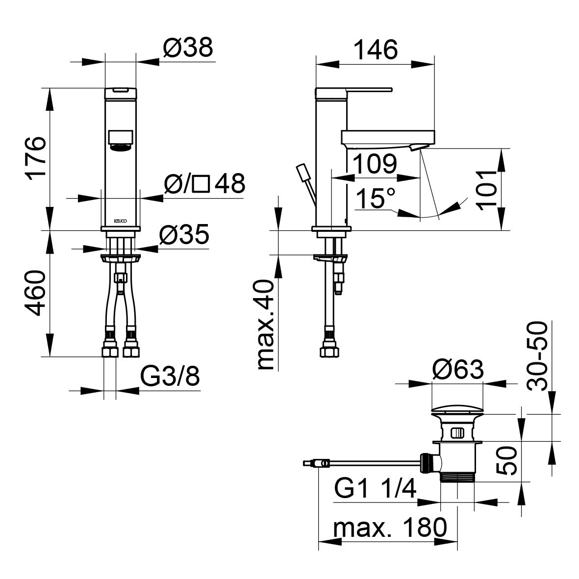Keuco IXMO Flat Einhebel-Waschtischmischer 100, mit Zugstangen-Ablaufgarnitur