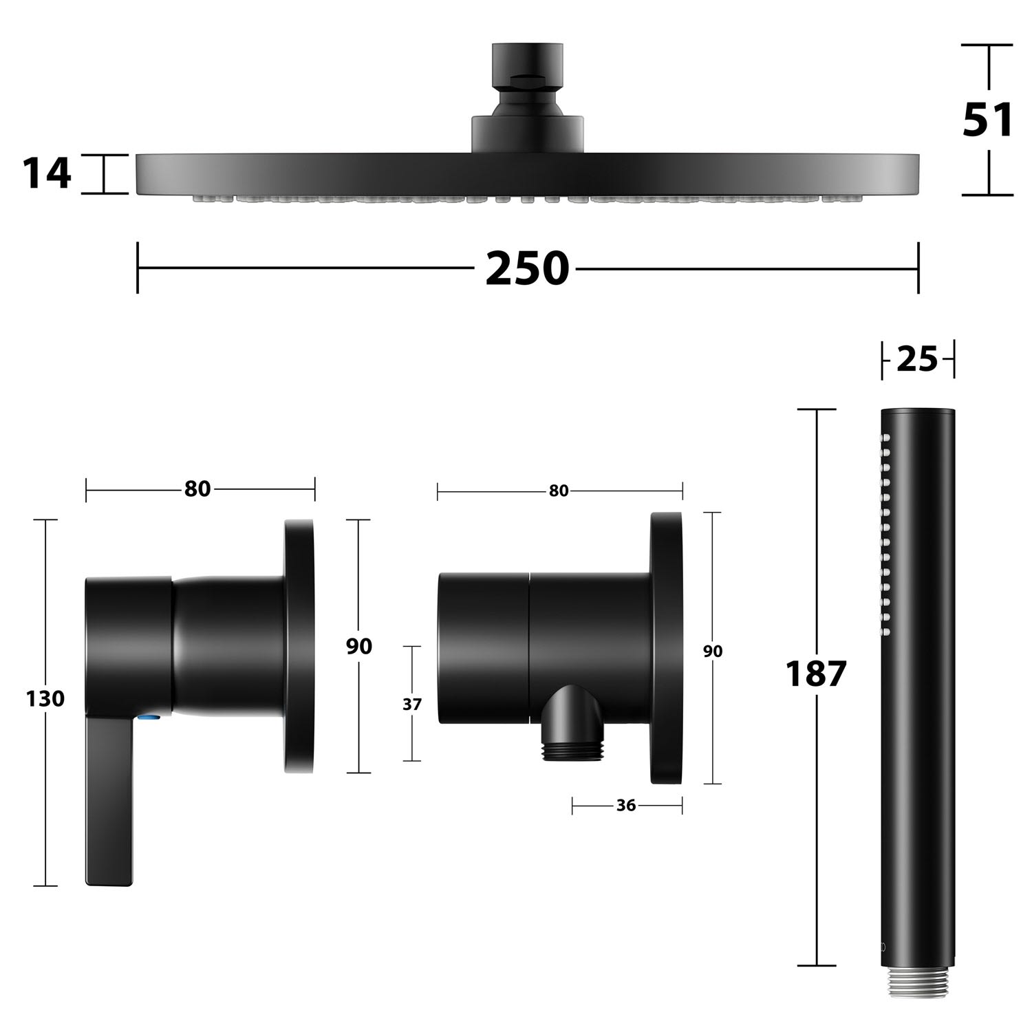 Kronenbach Lima 2.0 Black Duschsystem Unterputz, Einhebelmischer mit Umsteller, rund