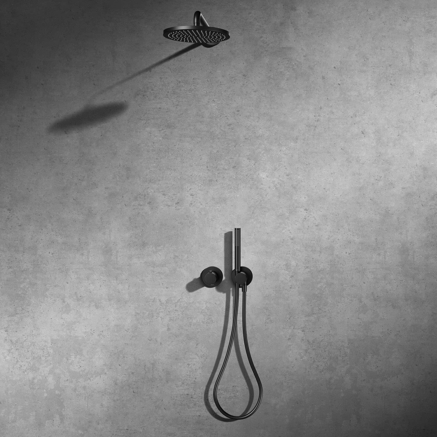 Herzbach MODUL7 BLACK Duschsystem T-RB250 mit Thermostat und Kopfbrause rund