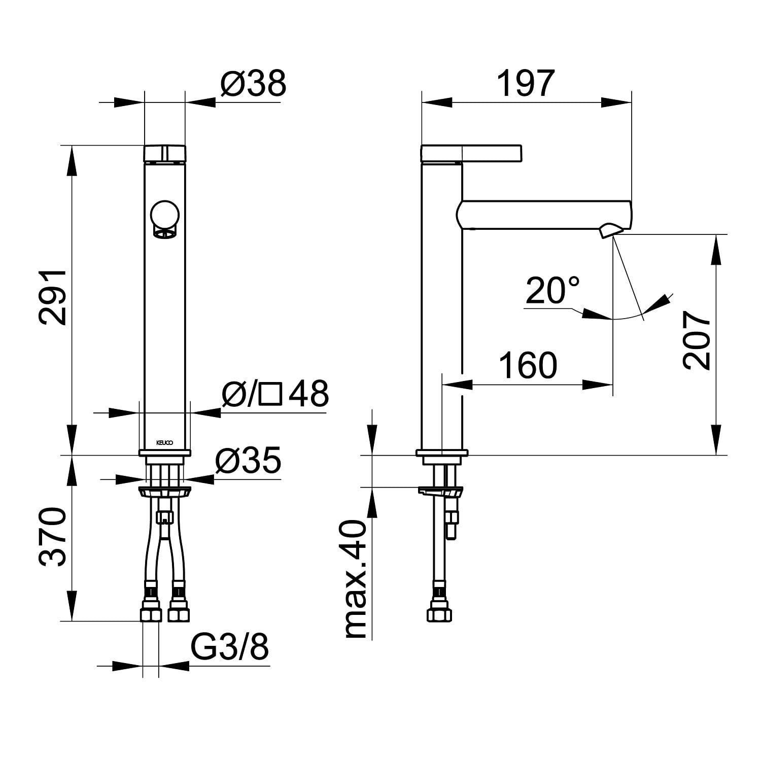 - Inkl. G 3/8 Anschlussschläuche