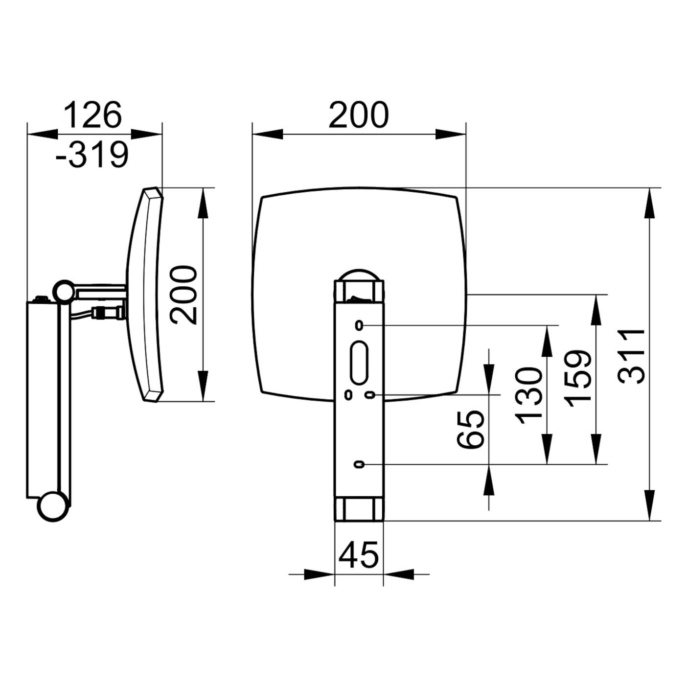 - Höhe der Wandbefestigung: ca. 20 cm, Breite: ca. 4,5 cm