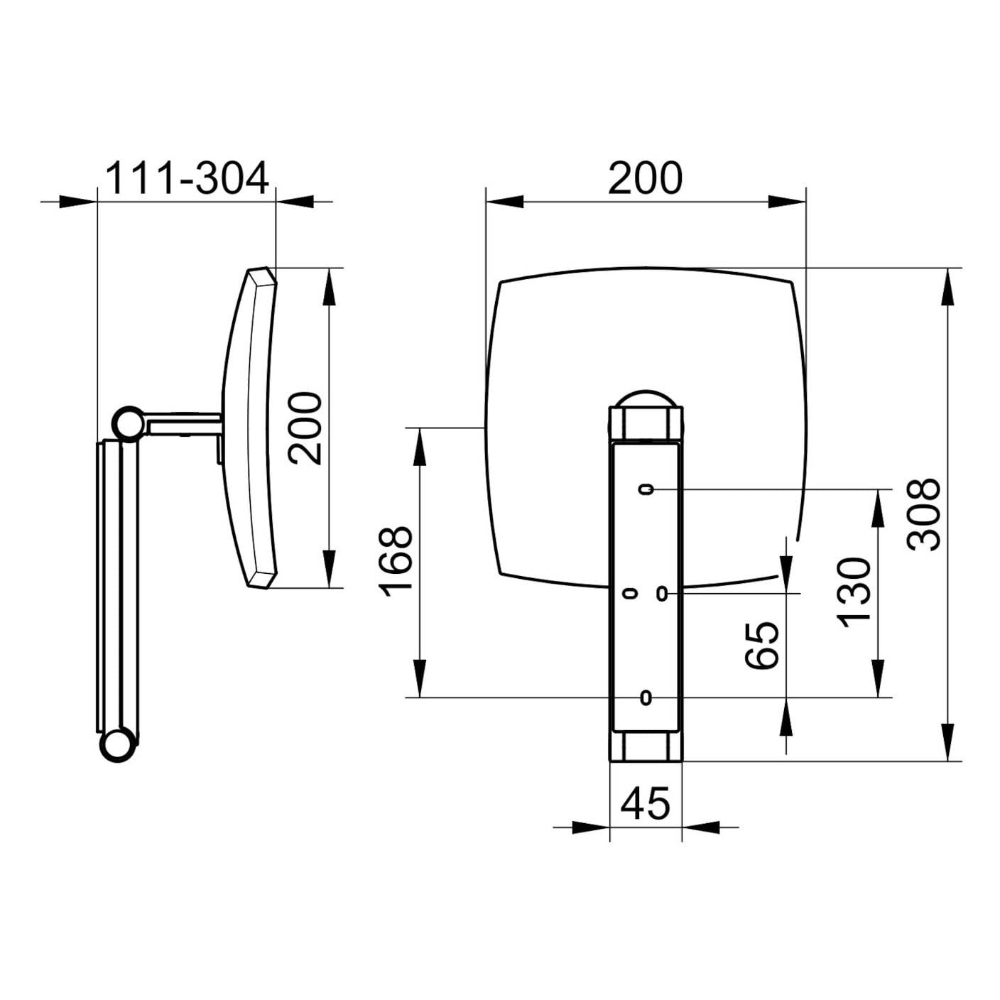- Spiegelfläche: 20 x 20 cm